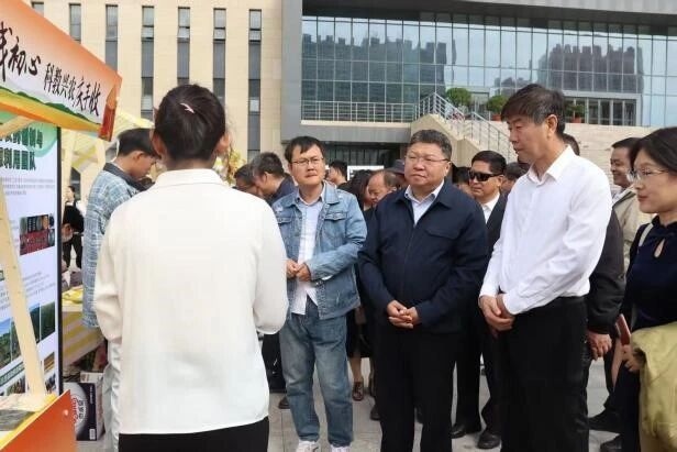 参会人员还参观了承办九色视频 的科研成果展和创新大赛获奖成果展,观摩了学生创作的种子艺术画、手工制品、文创作品等,并了解了校企合作企业展出的五谷杂粮等特色农产品。
