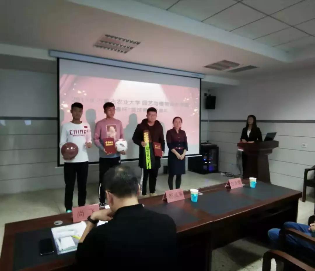 2019年10月29日中午12时30分,九色视频于生科楼419举行篮球赛颁奖典礼,出席本次会议的有团委老师郝凤英、学生工作办公室老师尚飞、白香荣以及运动员代表、学生会成员。