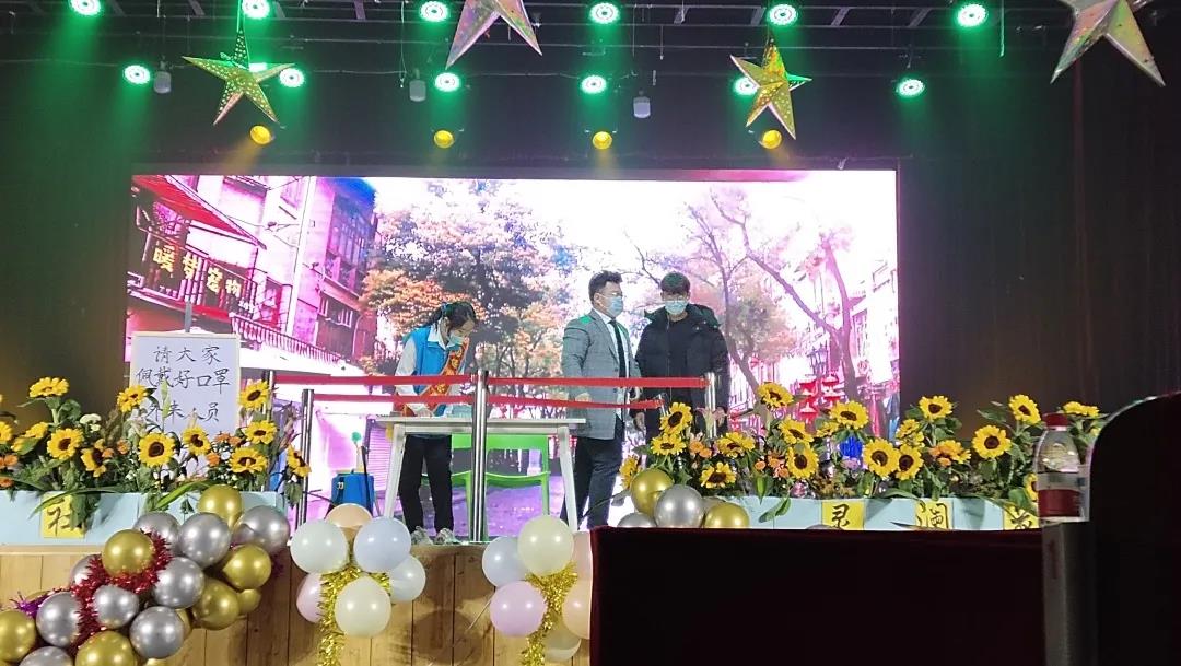 在精彩的表演期间,颁发了优秀学生干部、优秀团干部、创新创业先进个人等奖项,鼓励学生们不骄不躁,继续奋斗。同时,还颁发了集体奖项、教师奖项等,为教师一年的辛苦做出表彰。晚会还采用腾讯会议方式进行现场直播,共百余人进行观看。