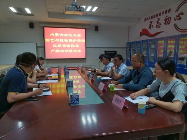 的基本情况。随后,几位老师分别结合个人的研究领域进行了深入交流。王克虎局长对于本次会议的成功举办表示感谢,介绍了泗阳县相关产业的发展情况与实际需求,希望与农大开展深入的科技服务对接及合作,共同推进产学研协同发展,促进农大教师的科研成果转移转化,服务于产业化发展。参会企业家尚然农场负责人朱政简要介绍了自己的创业历程,分享了自己管理的企业在高架草莓栽培、白粉病、炭疽病防控手段探索研究,车厘子、樱桃的栽培与后期管理及生态农场建设方面的经验和思路,并就设施园艺、绿色种植技术、病虫害防控技术、校企合作、本科生实践教学等方面与农大教师进行了交流,双方合作意愿强烈,希望进一步加强交流、开展合作。