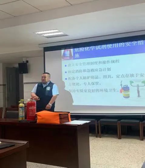 北京卫民安消防内蒙古站主任王涛应邀担任主讲嘉宾。他从实验室安全、急救知识和消防安全等方面认真分析了安全事故产生的原因,深刻阐释了安全的重要性,着重强调了加强消防责任制的落实。此次培训,紧密结合近年来重大安全事故案例剖析、突发事件处置等为主要内容,为进一步提升全院教职工安全意识,提高安全防护能力有极大促进作用。王涛还为参加培训的教职工进行了消防演练。