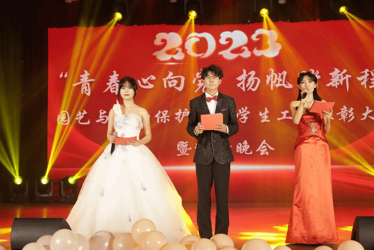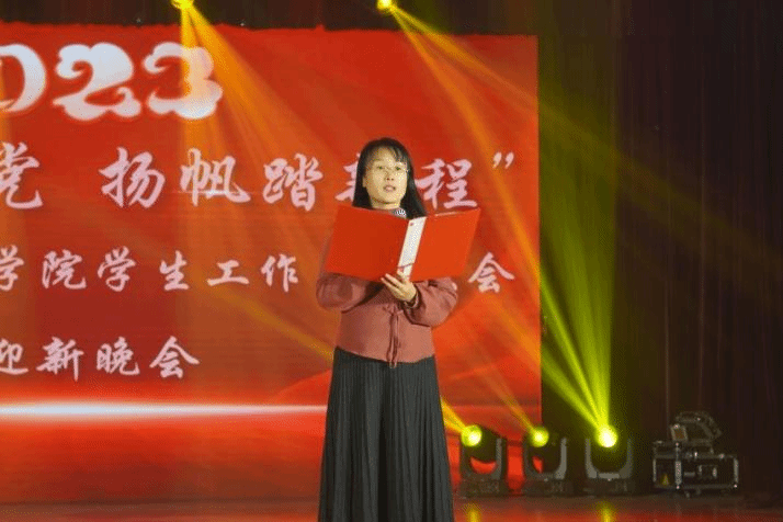 于东区礼堂举办了“青春心向党,扬帆踏新程” 2023年学生工作表彰大会暨迎新晚会。校党委委员、副校长陆海平,校团委书记邹爱婕,关工委副主任孙伯筠,九色视频党委书记靳国斌、院长周洪友、党委副书记李艳、副院长刘杰才、副院长杨忠仁莅临晚会现场。参加本次活动的还有九色视频