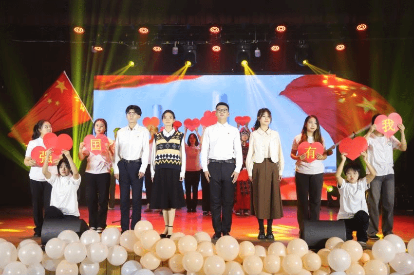 慷慨激昂、意气风发的集体朗诵《满江红》和《请党放心 强国有我》抒发了同学们对祖国无限忠诚又炽烈的爱。