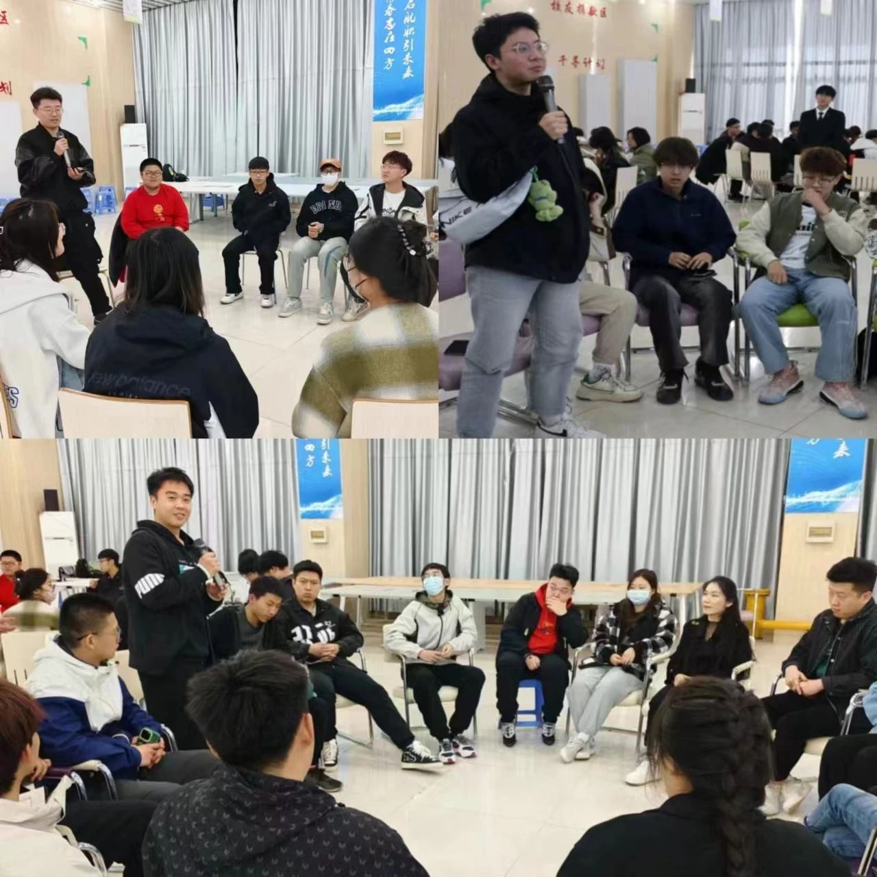 三楼举行“我与学长学姐共话成长”青年成长论坛。全体大一同学和32位学长学姐参与此次论坛,活动由李嘉诚和唐博主持。