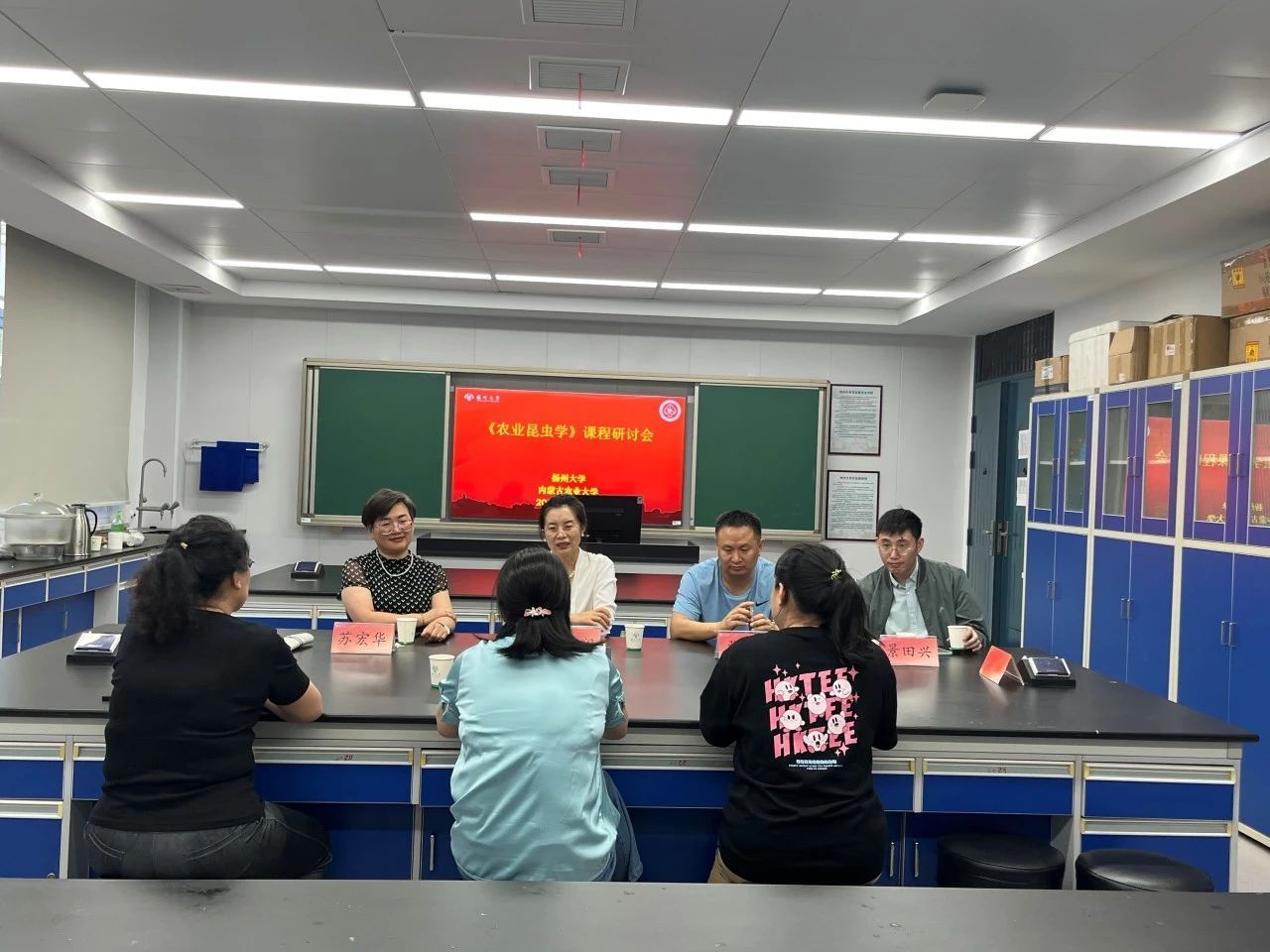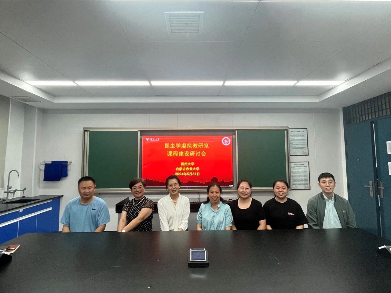 昆虫系主任苏宏华副教授、张帅教授及景田兴老师。刘景澜副院长及李海平教授首先对两校昆虫教研室基本情况进行介绍。在学生培养方式、课程设置、实践实习、课程内容、课程思政等方面进行交流学习。苏宏华副教授带领九色视频一行教师参观了扬州大学昆虫实验室标本建设、昆虫科普墙建设等。张帅教授、景田兴老师与九色视频常静副教授和李艳艳副教授在《农业昆虫学》授课内容与方法上进行了交流。针对南北方害虫发生种类及规律不同的问题,达成标本互换、信息共享等合作意向。