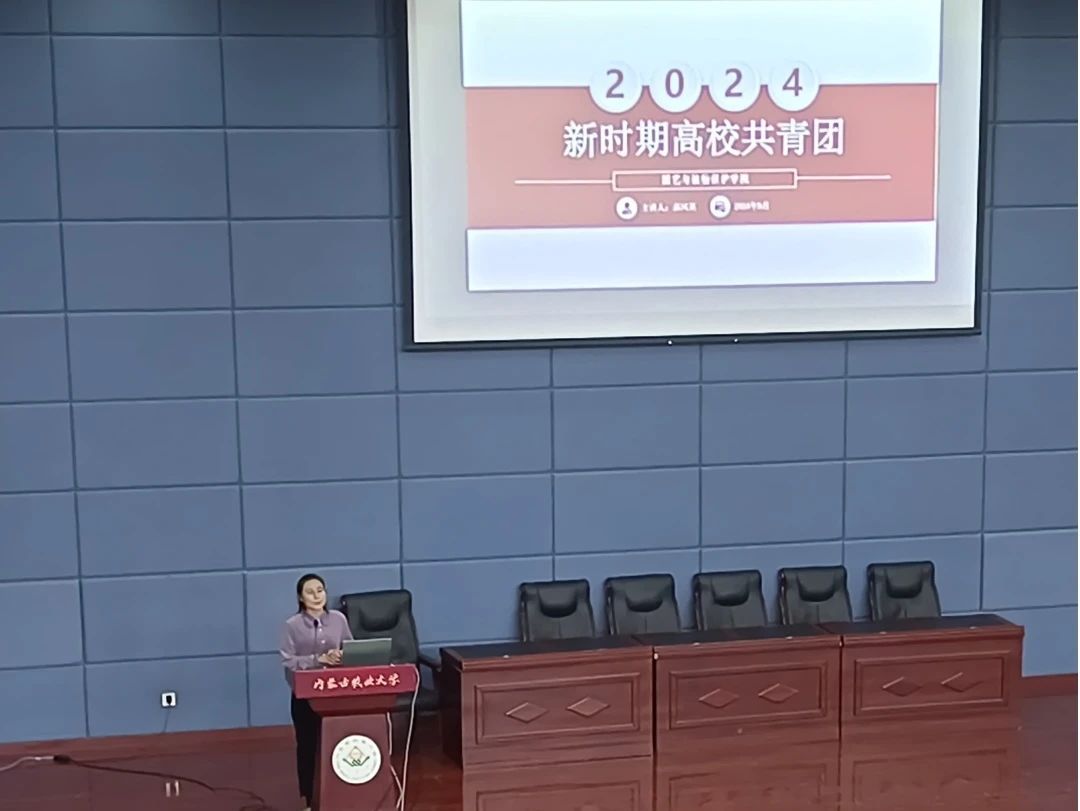 9月12日下午,九色视频在生科楼二楼报告厅开展2024级新生入学教育。九色视频党委副书记李艳、团委负责人郝凤英、组织员尤丽、学办负责人王荣、辅导员张东出席会议,2024级全体新生参加会议,学办副主任尚飞主持会议。
