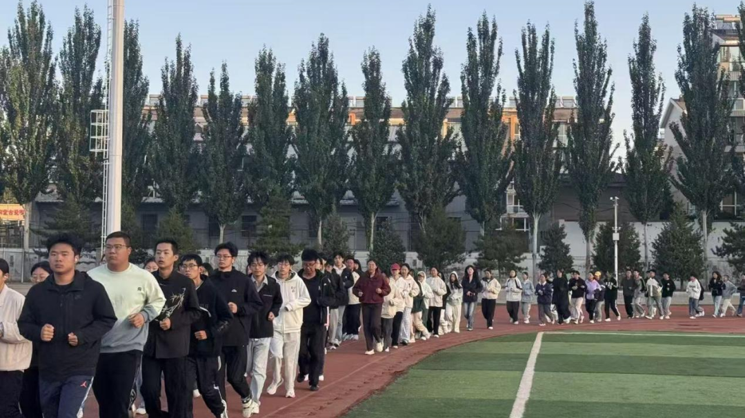 每日清晨6:50,参与学生在操场指定区域准时集合。在学生干部的引导下,同学们迅速整队,形成整齐的跑步队列。晨光中,“操场三圈”成为每日固定的奔跑里程。学子们步伐一致、节奏统一,奔跑的脚步声在操场上回荡,展现出蓬勃朝气与集体凝聚力。学生干部全程值守,统筹队伍秩序并巡查场地设施,为活动安全、有序开展提供了有力保障。