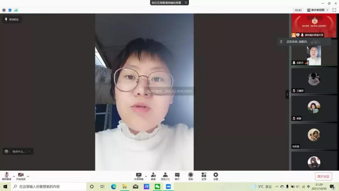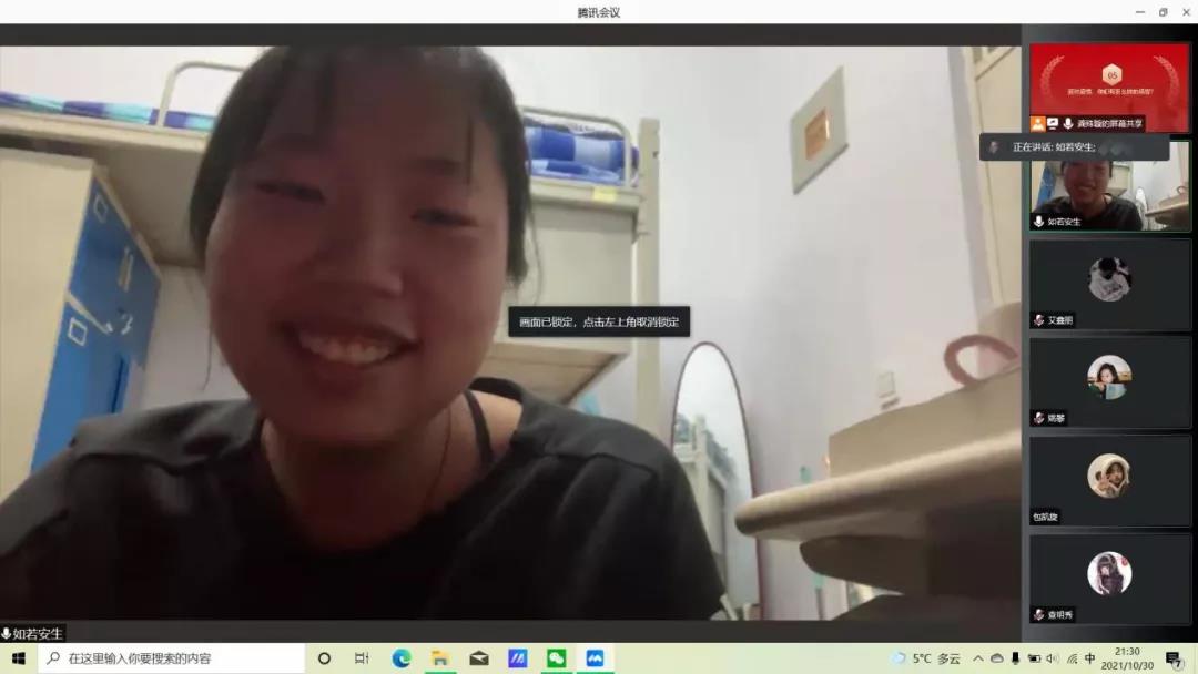 主持人带领大家回顾了过去两年中我国在抗疫斗争中的启示,结合当下新一轮疫情,道出如今是对大家的考验,指出上网课导致一部分人对学习的懒散、怠慢等态度及生活不规律等不良现象,希望同学们及时的反思。随后,同学们就“疫情期间如何做好本职工作,如何修身养性”开展讨论。