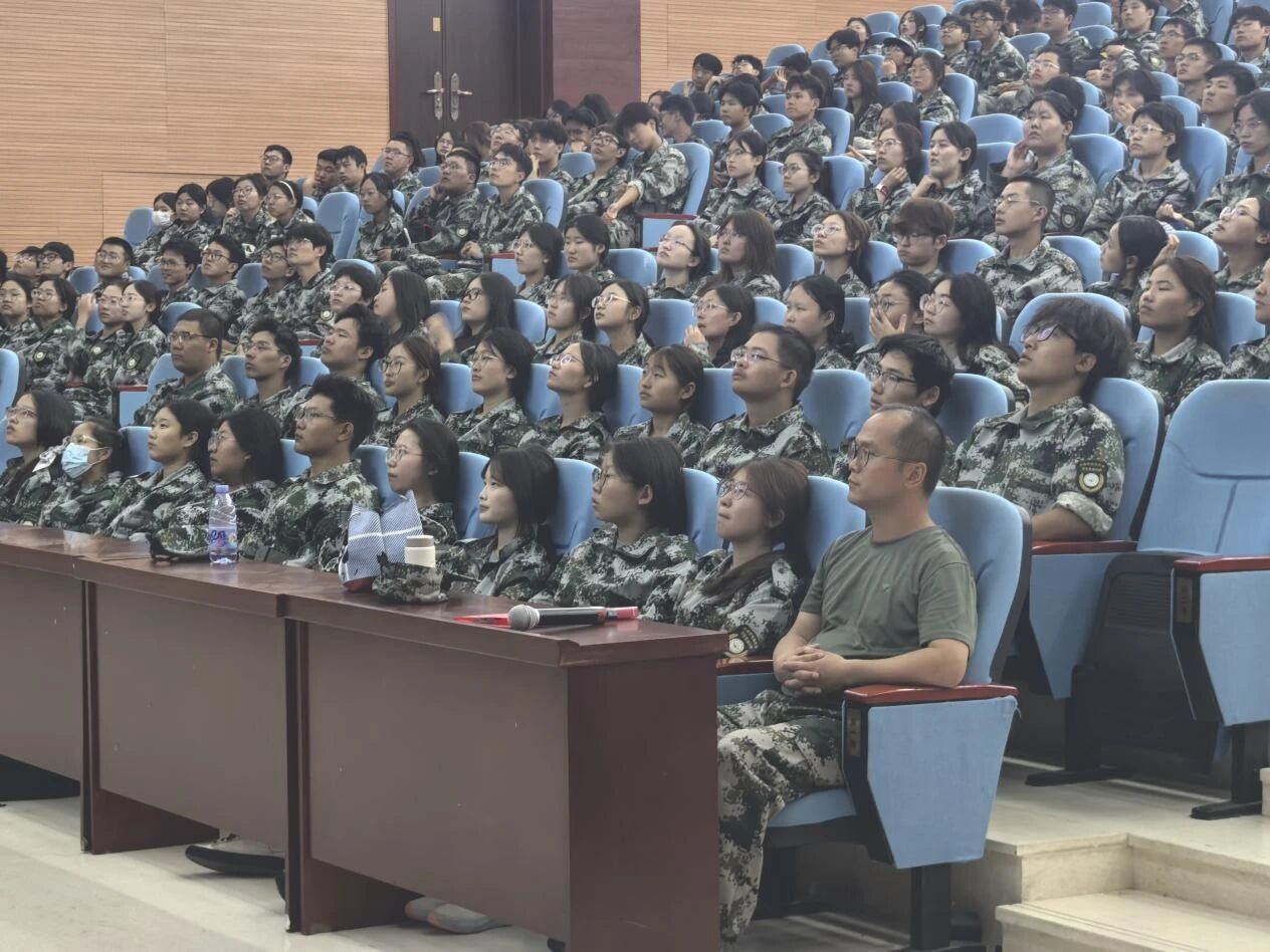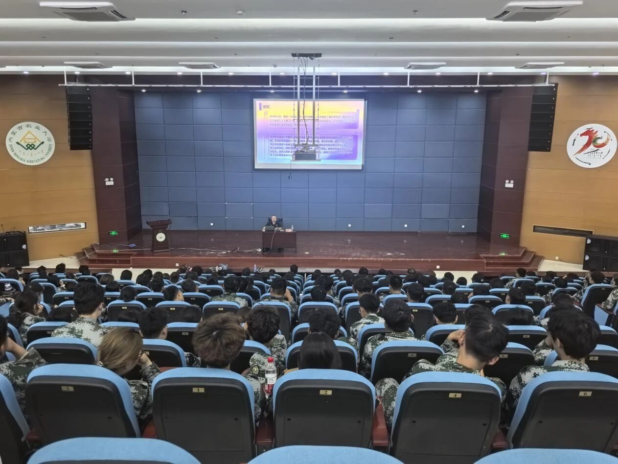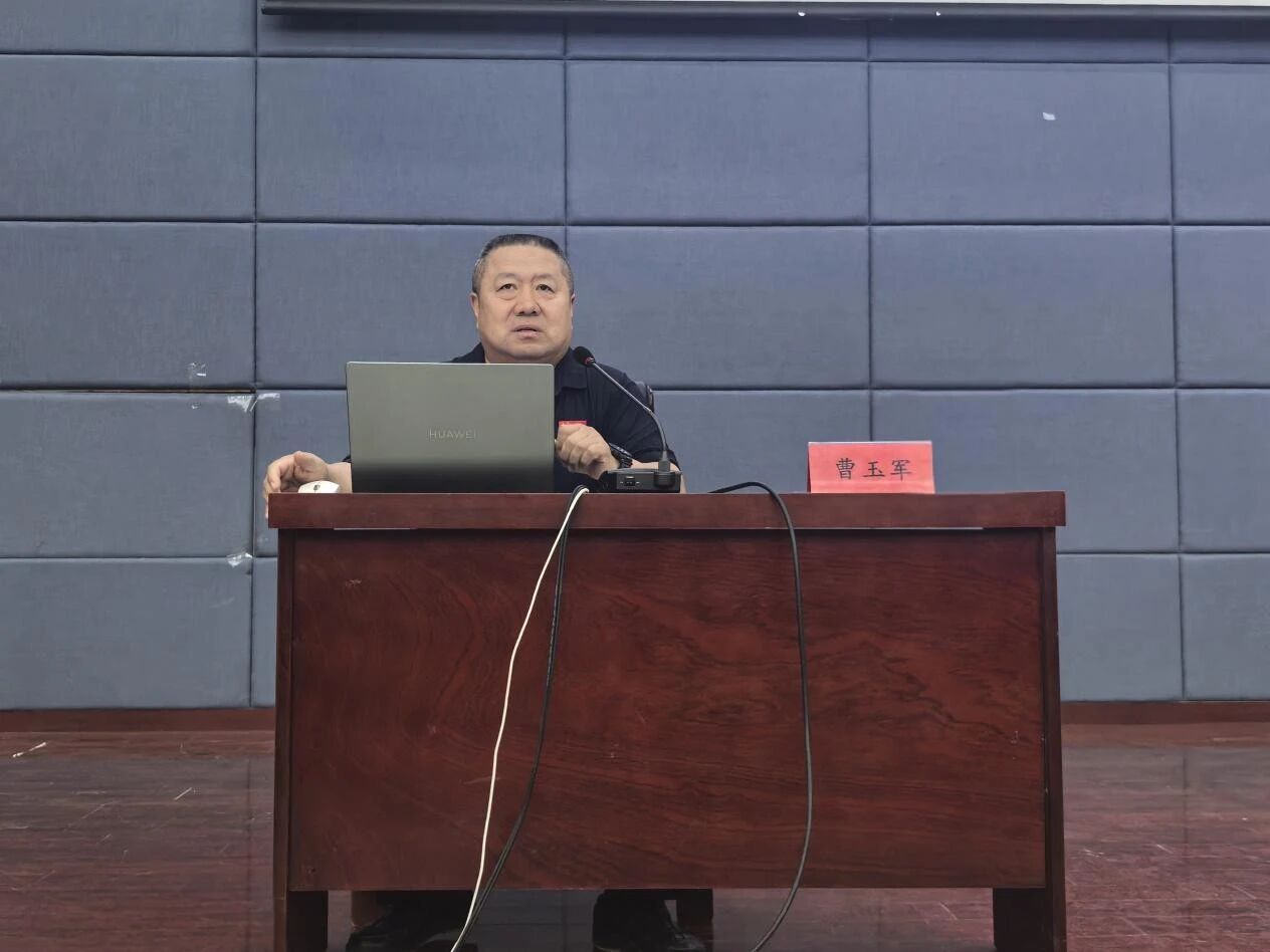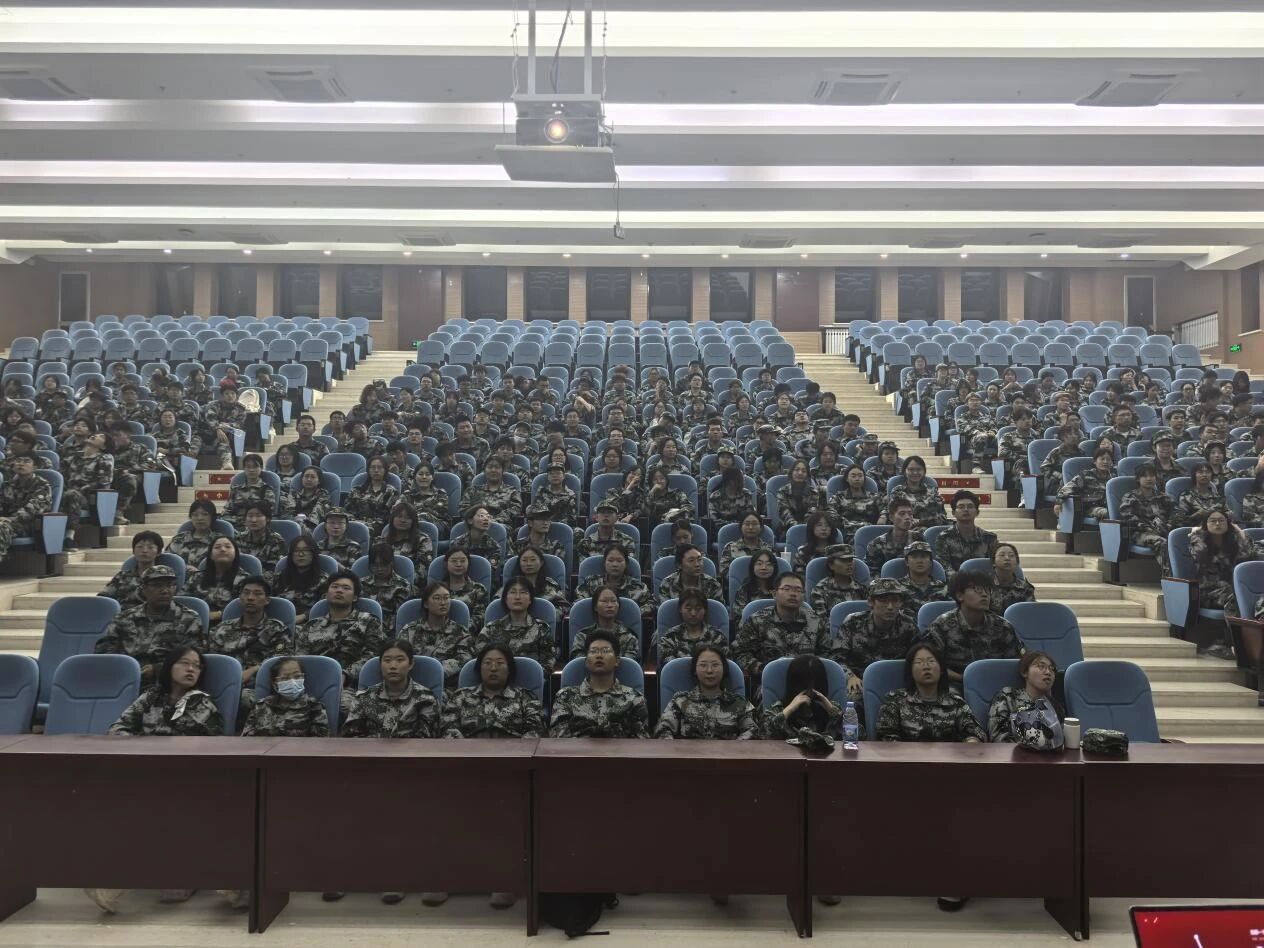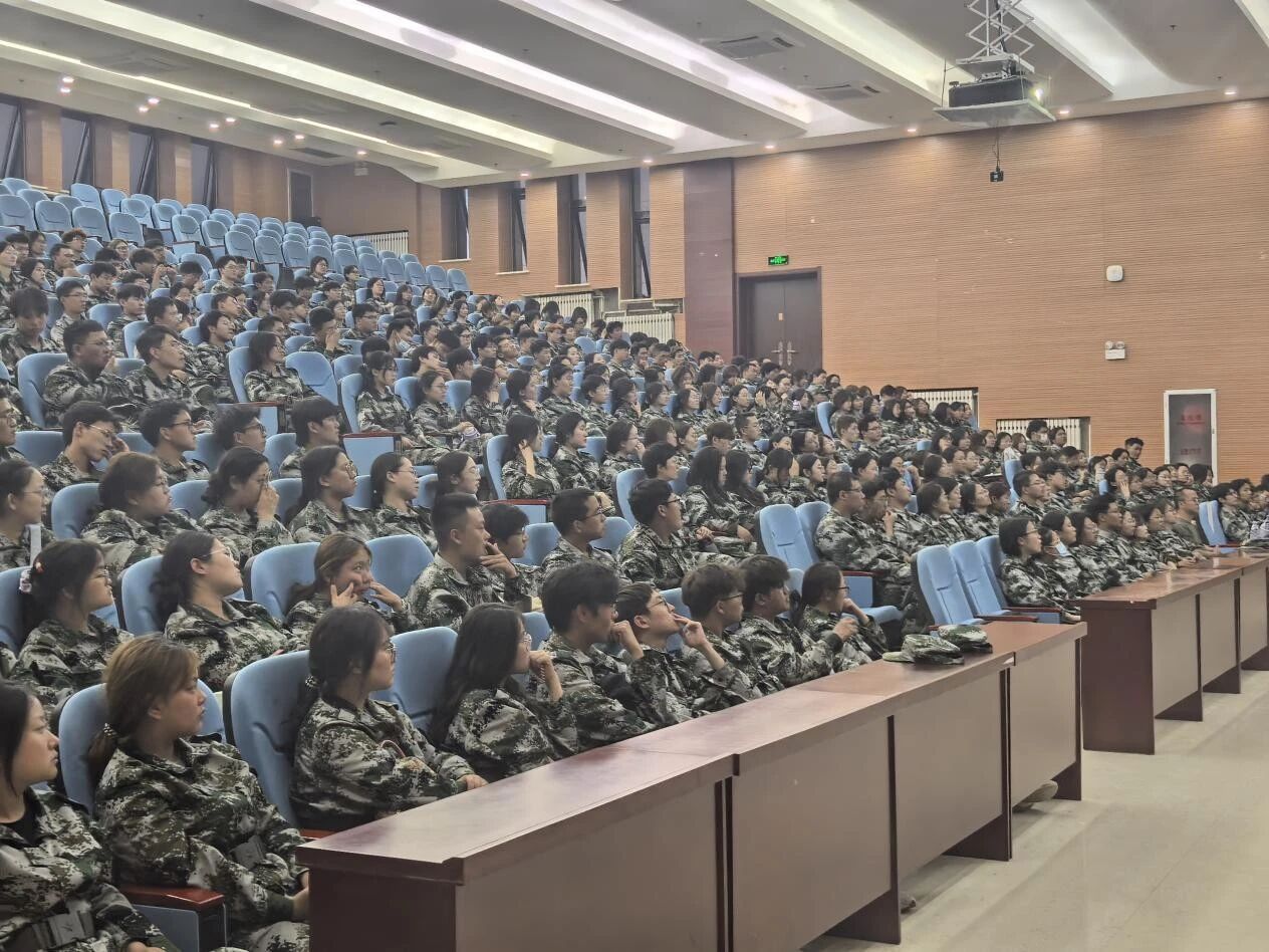 治安科科长曹玉军为2025级新生做校园安全知识教育讲座。学生工作办公室负责人尚飞及全体新生参加本次活动。