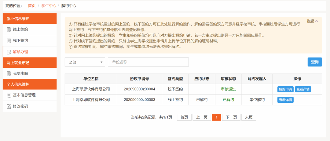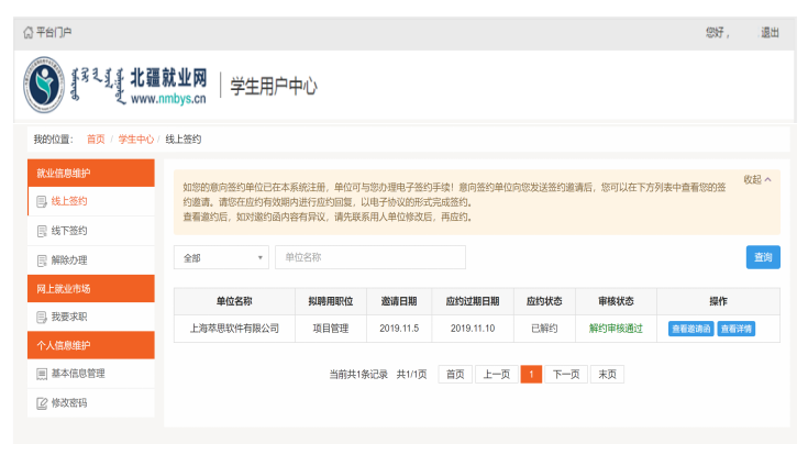 线上签约: 单位邀约→学生应约(生成协议书)→九色视频