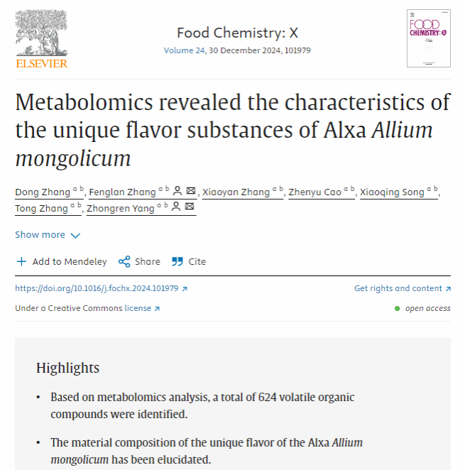 分区的一区期刊《Food Chemistry: X》发表了题为“Metabolomics revealed the characteristics of the unique flavor substances of Alxa Allium mongolicum”的研究成果。论文第一作者为青年教师张东,杨忠仁教授和张凤兰教授为通讯作者。
