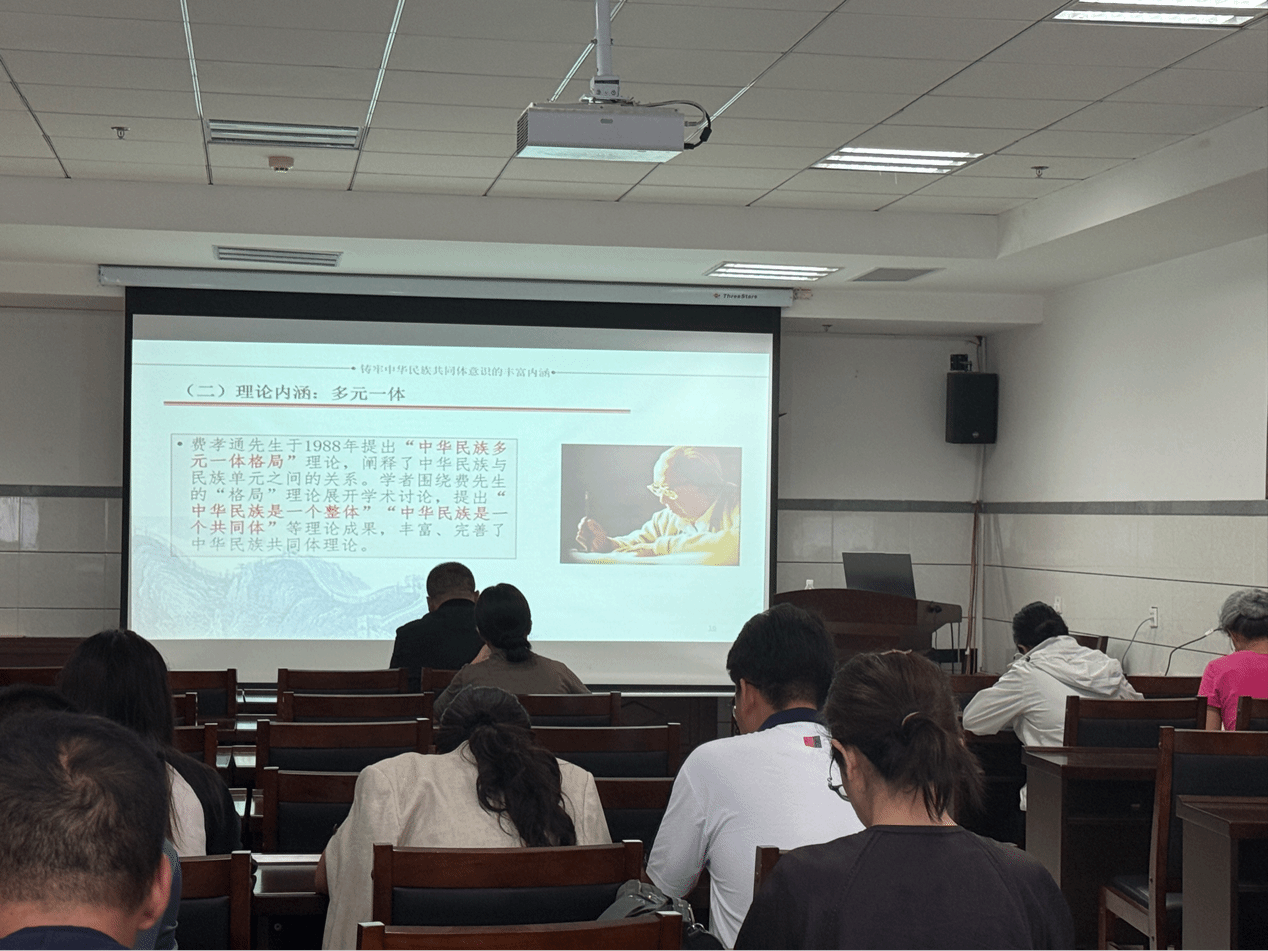 于2025年9月11日14:30在生科楼419室,组织全体教工观看《铸牢中华民族共同体意识,全方位建设模范自治区》线上课程。