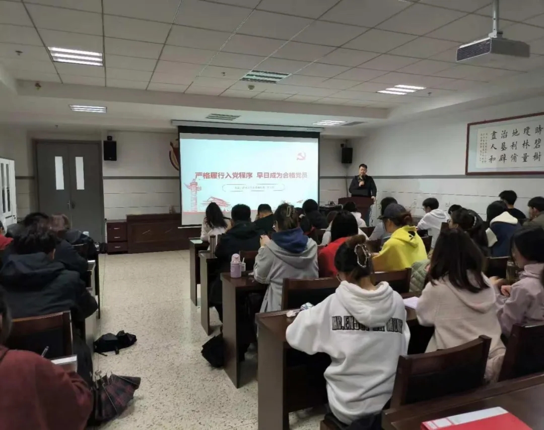 第十四期入党积极分子齐聚生科楼419室进行党课第三讲的学习。围绕“发展党员的流程”这一主题,党委组织部李子冲老师为学员们带来了一场详实的讲解。
