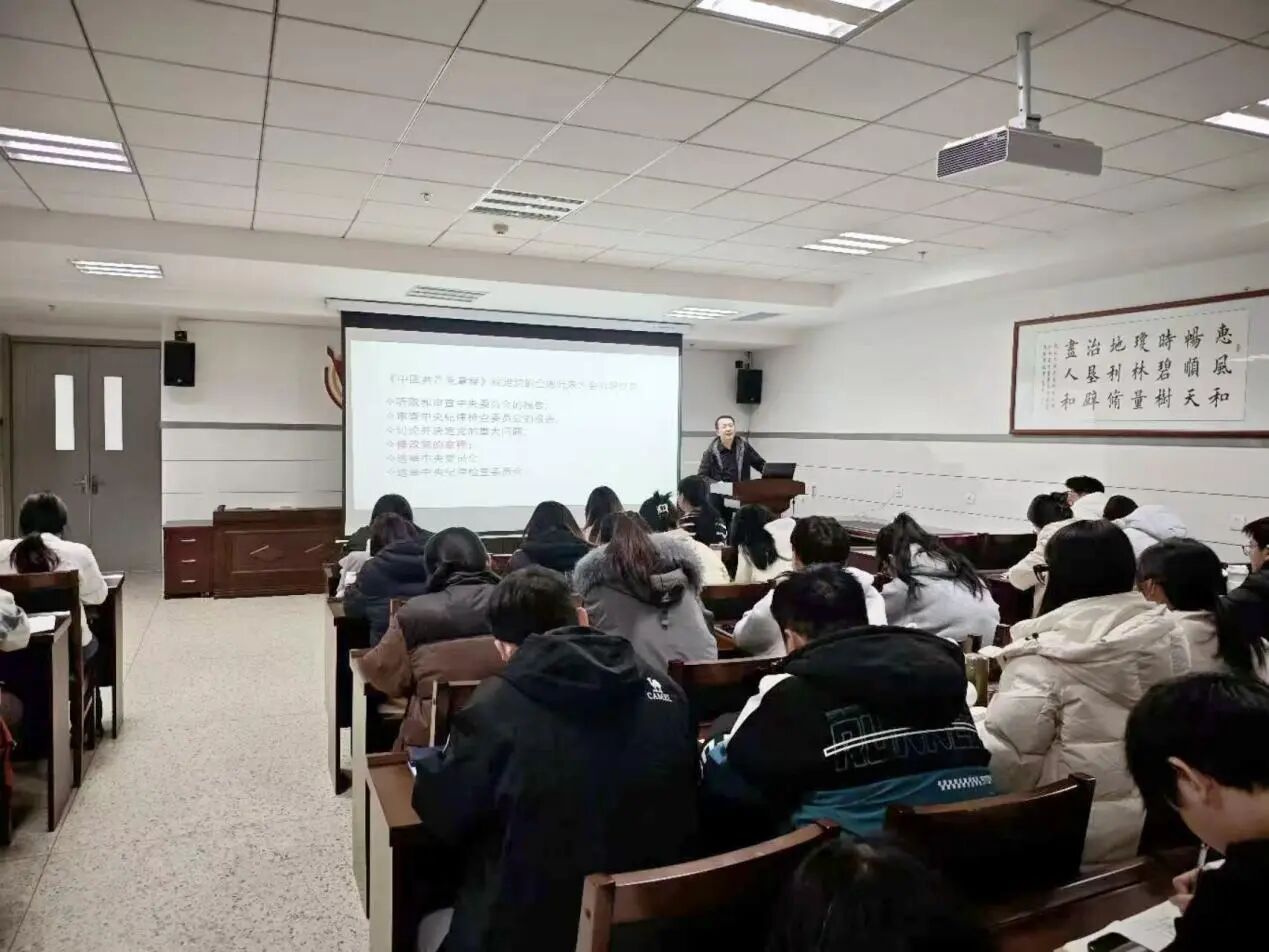 第十四期发展对象于生科楼419室参加党课培训班第六次学习。此次党课的主题为《中国共产党章程》,由校党委组织部副部长孙玉伟老师讲授。