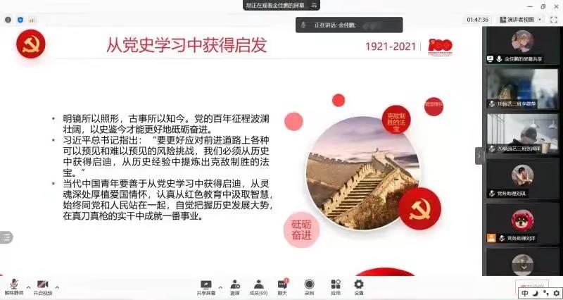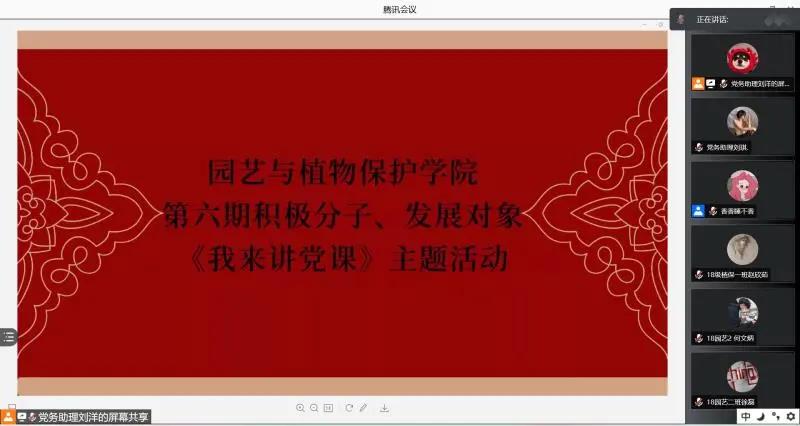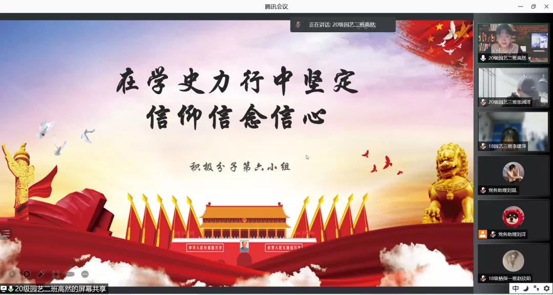 通过腾讯会议开展“我来讲党课”活动,全体第六期入党积极分子、发展对象、党务助理及党员代表参加活动。