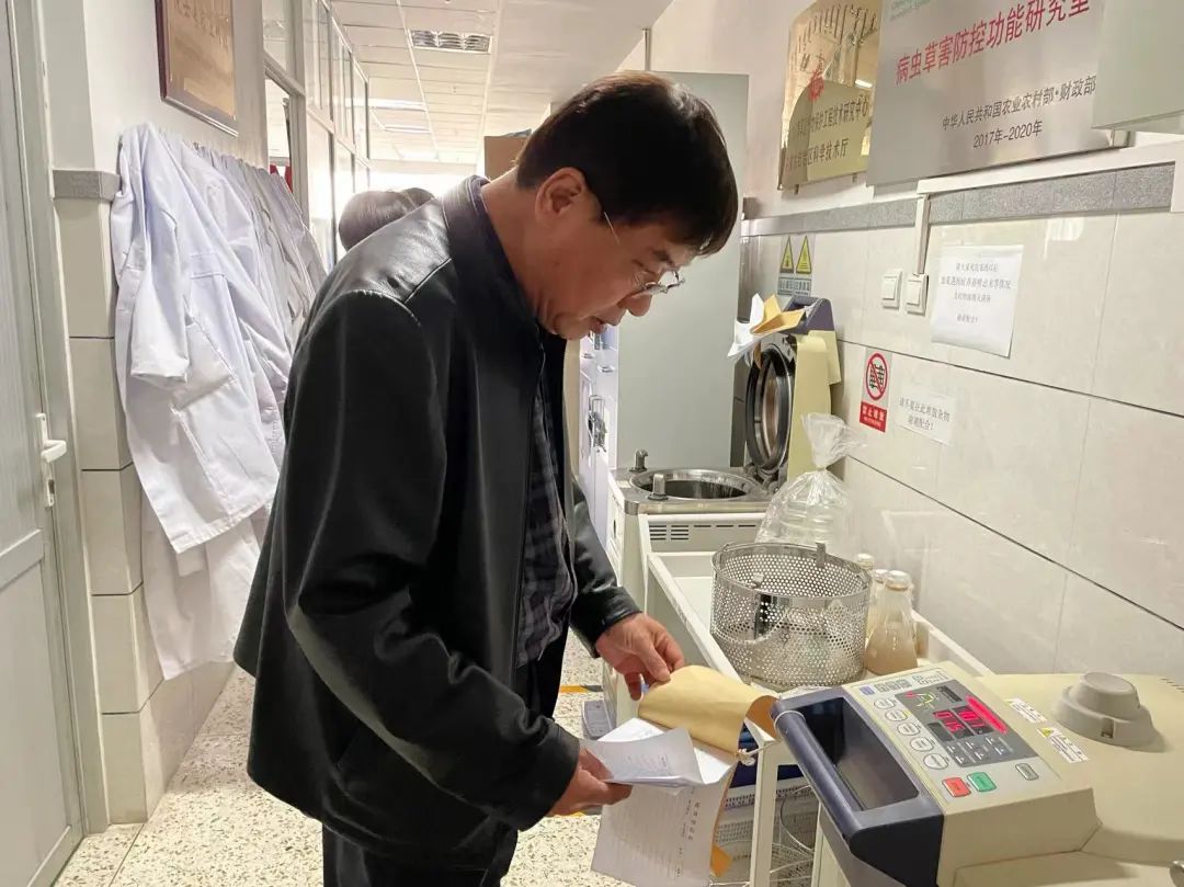 党委书记靳国斌、副院长刘杰才以及相关工作人员参加检查。本此检查共检查了实验室38间。排查出安全隐患20余项。并将检查结果通过全院教工大会的形式进行了通报。