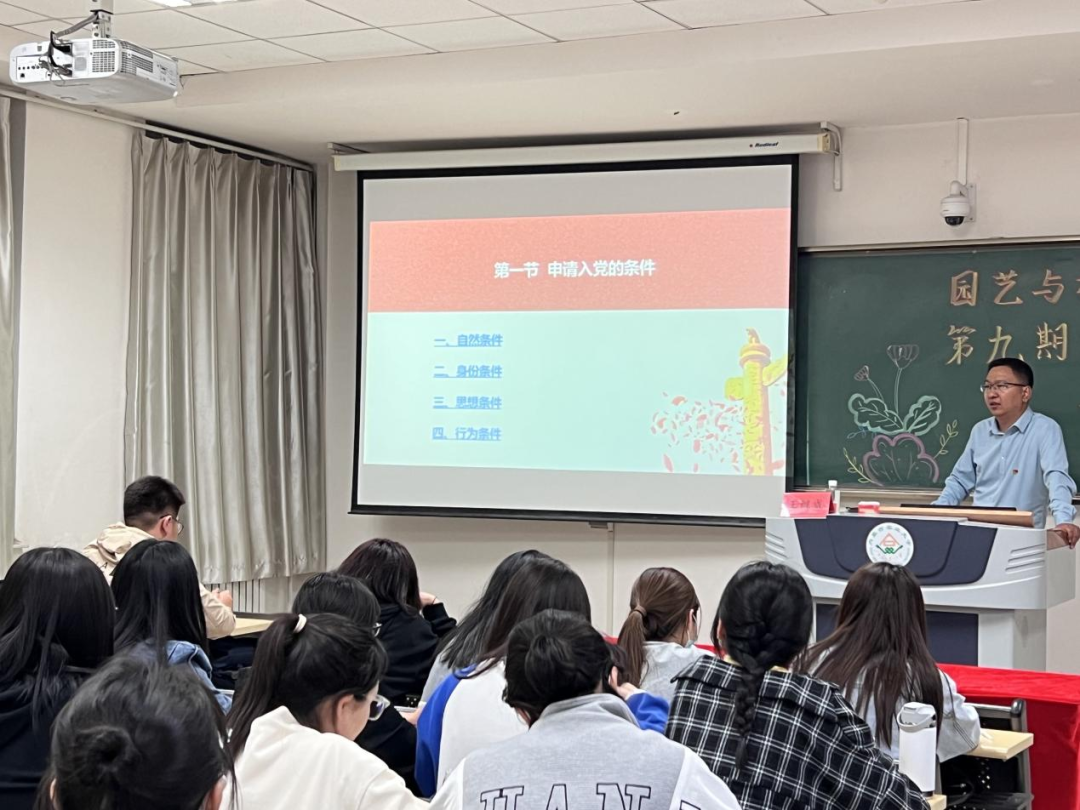 王继成老师主要从“大学生申请入党条件、入党流程、注意事项”三方面讲授。作为一名发展对象要端正入党动机,有坚定的共产主义信念,坚守党的纲领,认真贯彻执行党的决议,积极接受党组织的考验与批评,以党员的标准严格要求自己。大学生党员要做好表率,学好科学文化知识,学好共产主义的理论,在社会实践中提高自己,在为人民服务的过程中实现自己的人生价值,为实现共产主义理想努力奋斗。结合大学生的实际,大学生党员在日常学习、工作、生活中要做到:学习理论,坚定信念;牢记宗旨,勇挑重担;艰苦朴素,勤奋好学;严以律己,争做模范。会议最后,王继成老师寄语同学们要脚踏实地,志存高远,实事求是,不畏艰难,努力学好专业知识,为社会贡献自己的一份力量。