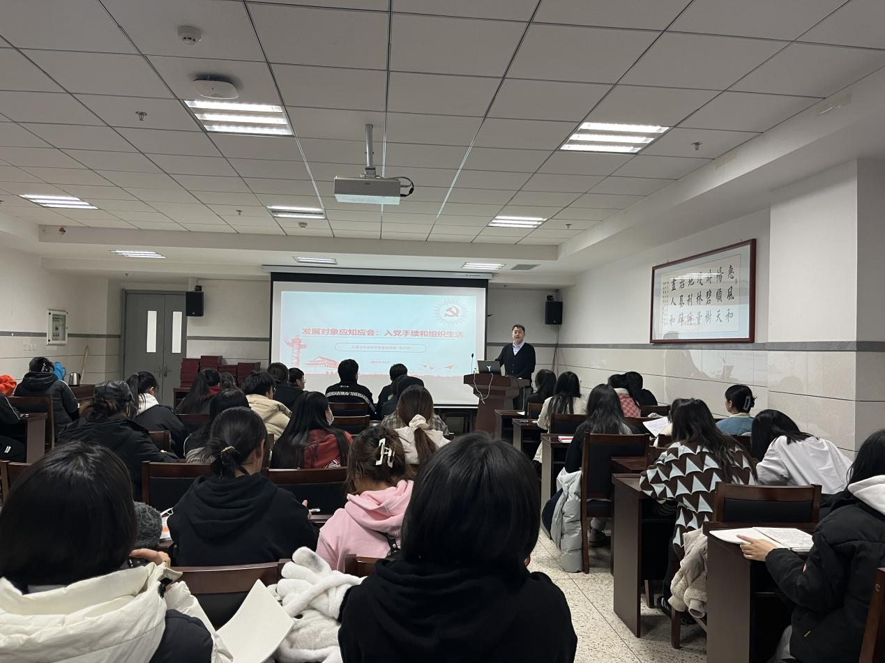 党委组织部李子冲老师担任主讲人,主题为《发展对象应知应会:入党手续和组织生活》。