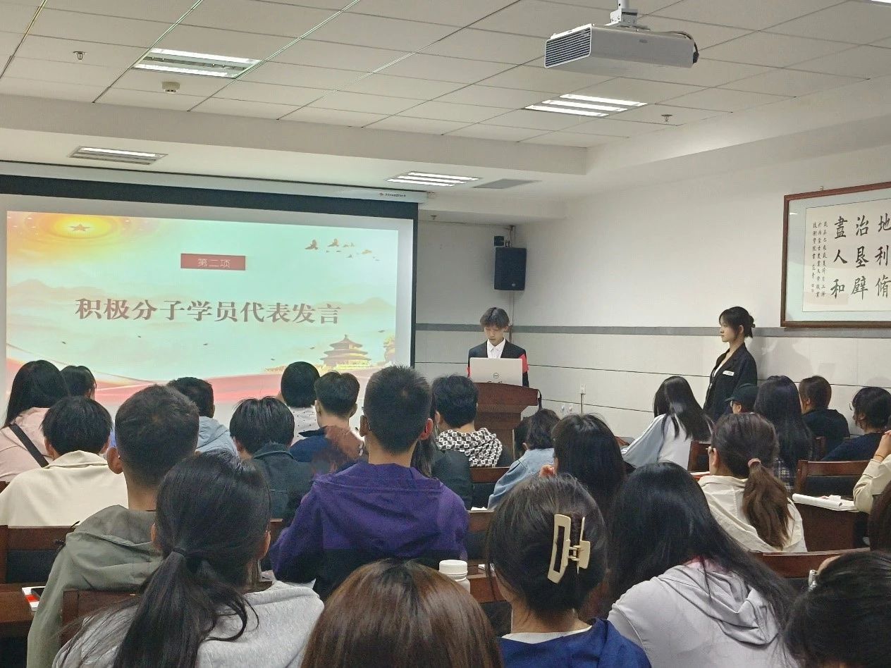 开班典礼上,积极分子代表王锦涛同学上台发言,他谈了对“积极分子”这一身份的认识,提到作为入党积极分子应该更加深入地学习党的理论,践行党的政策,不断提高自己的政治觉悟和思想水平,更加积极地参与各项工作和实践活动,不断提高自己的工作能力和实践能力,最后他向党组织表示衷心的感谢和崇高的敬意!同时,也向在座的各位老师和同学们表示诚挚的感谢和美好的祝愿!他的发言充满激情,激发了在场所有人的信念和斗志。