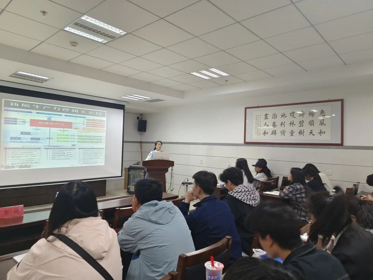 在生科楼419室举办第十一期入党积极分子、发展对象党课第一讲。党课第一讲主题为《新质生产力与农业创新的关系》,由党委副书记李艳担任主讲老师。