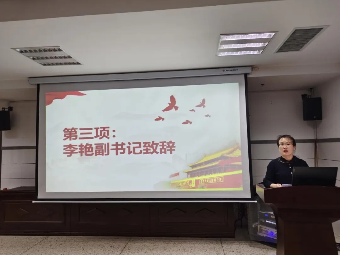 随后,李艳副书记为开班典礼致辞。她对参加培训的同学表示热烈欢迎和殷切期望,李艳副书记强调了党课学习的重要性,并希望学员们通过此次培训,能够深入理解党的伟大精神,坚定入党信念,不断提升自身素质。就“如何端正入党动机”、“党组织的培养和考察途径”以及“如何以实际行动向党组织靠拢,成为一名合格的党员”这三方面进行了阐述。她鼓励学员们不仅要认真学习理论知识,更要将所学应用到实际行动中,时刻牢记为人民服务的宗旨。