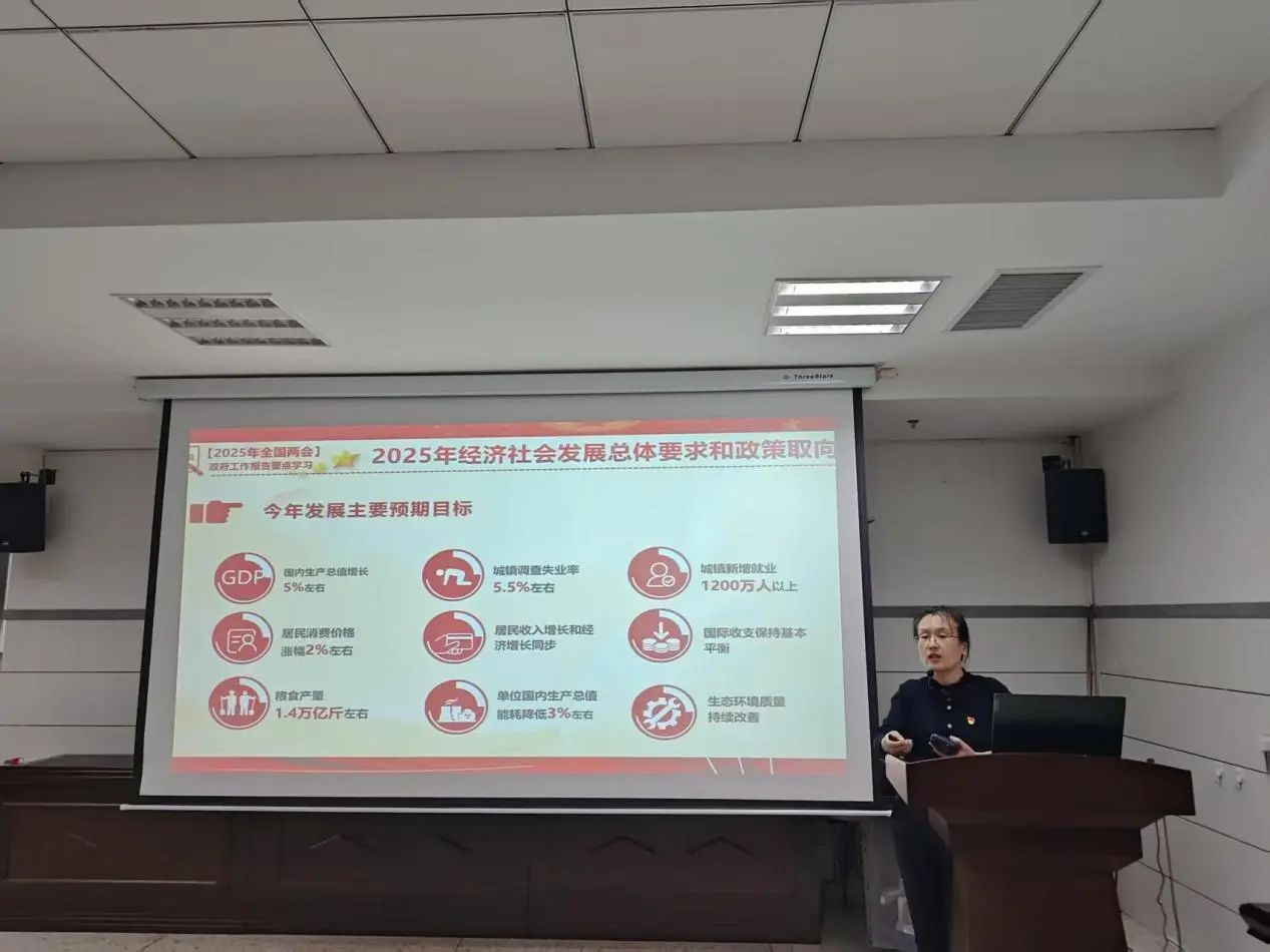 第十三期入党积极分子学员于生科楼419参加第一次党课学习。此次党课以《2025年两会政府工作报告要点学习》为主题,由九色视频党委副书记李艳讲授,旨在激发广大积极分子了解时事,为社会发展贡献力量。