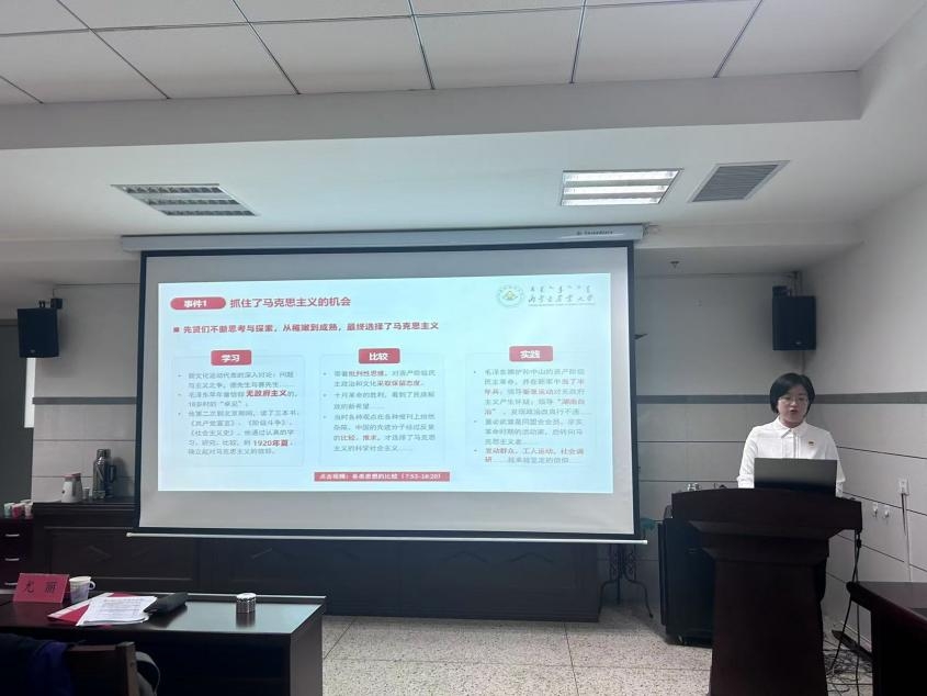 本次党课,尤丽老师围绕中国共产党如何在时代浪潮中捕捉机遇、发展壮大的核心议题,通过对新文化运动、抗日战争、抗美援朝等重大历史节点的深度剖析,深刻揭示了我党辉煌成就背后的精神底蕴——那是由无数党员无私奉献与无畏牺牲铸就的崇高精神。先贤们手握马克思主义的真理之剑,不懈探索、大胆实践,成功铺设了一条充满中国特色的马克思主义道路。