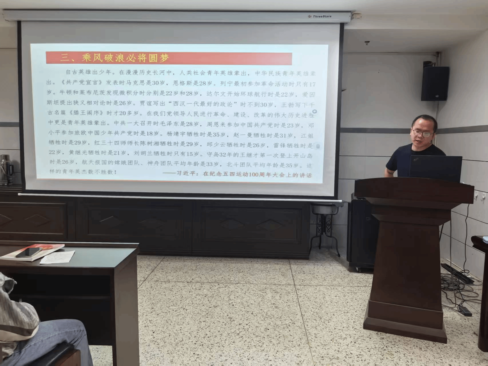 课程开始,尚飞老师以详实的史料为脉络,串联起中国共产党百年奋斗的壮丽篇章。他从嘉兴南湖上那艘承载着民族希望的小小红船讲起,带领学员们见证了中国共产党如何历经风雨,成长为领航中国行稳致远的巍巍巨轮。通过对比近代中国从被列强欺凌的弱国到如今世界强国的沧桑巨变,深刻诠释了中国共产党始终坚守 “为中国人民谋幸福,为中华民族谋复兴” 的初心使命。尚老师结合五四运动、南昌起义、长征、抗日战争、解放战争等重大历史事件,以及李大钊、方志敏、刘胡兰、黄继光等英雄人物事迹,深刻阐释了中国共产党在不同历史时期孕育出的伟大精神,如红船精神、井冈山精神、长征精神、延安精神等。