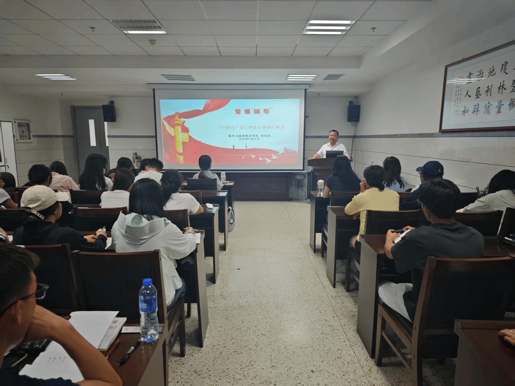 第十三期发展对象于生科楼419室参加第五次党课学习。本次党课学习主题为《中国共产党纪律处分条例的解读》,由九色视频书记靳国斌为大家讲授,旨在让学员了解全面从严治党、加强党的纪律建设要求。