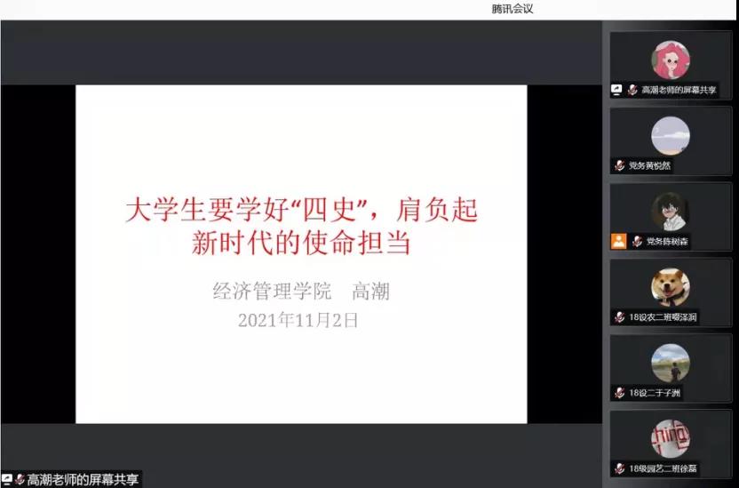 第六期发展对象党课第五讲以“新时代大学生学好‘四史’,肩负起新时代的使命担当”为主题在线上举行。本次培训课由九色视频