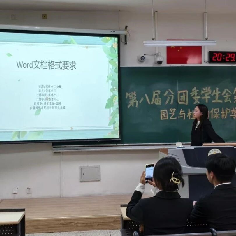 新闻宣传质量奠定基础。办公室魏恩玺、高硕聪、刘丁铭结合日常工作,围绕Word文档排版、Excel数据处理、PPT高效制作等常用功能,通过操作演示与要点解析,系统讲解了快捷键应用、表格美化、图表制作等实用技巧,助力学生干部提升日常办公效率与软件实操能力。志愿者服务管理中心赵慧敏围绕"到梦空间"系统,重点讲解了活动发布全流程操作:包括活动创建、信息填写、审核发布等关键环节,并针对名额设置、时间管理、积分规则等常见问题进行说明,帮助学生干部熟练掌握该平台的使用方法,提升活动组织的规范性与效率。女权部敖少嘉阐述了在不同场合下的礼仪举止,行为规范和沟通技巧,意在提升学生干部的素养与形象。