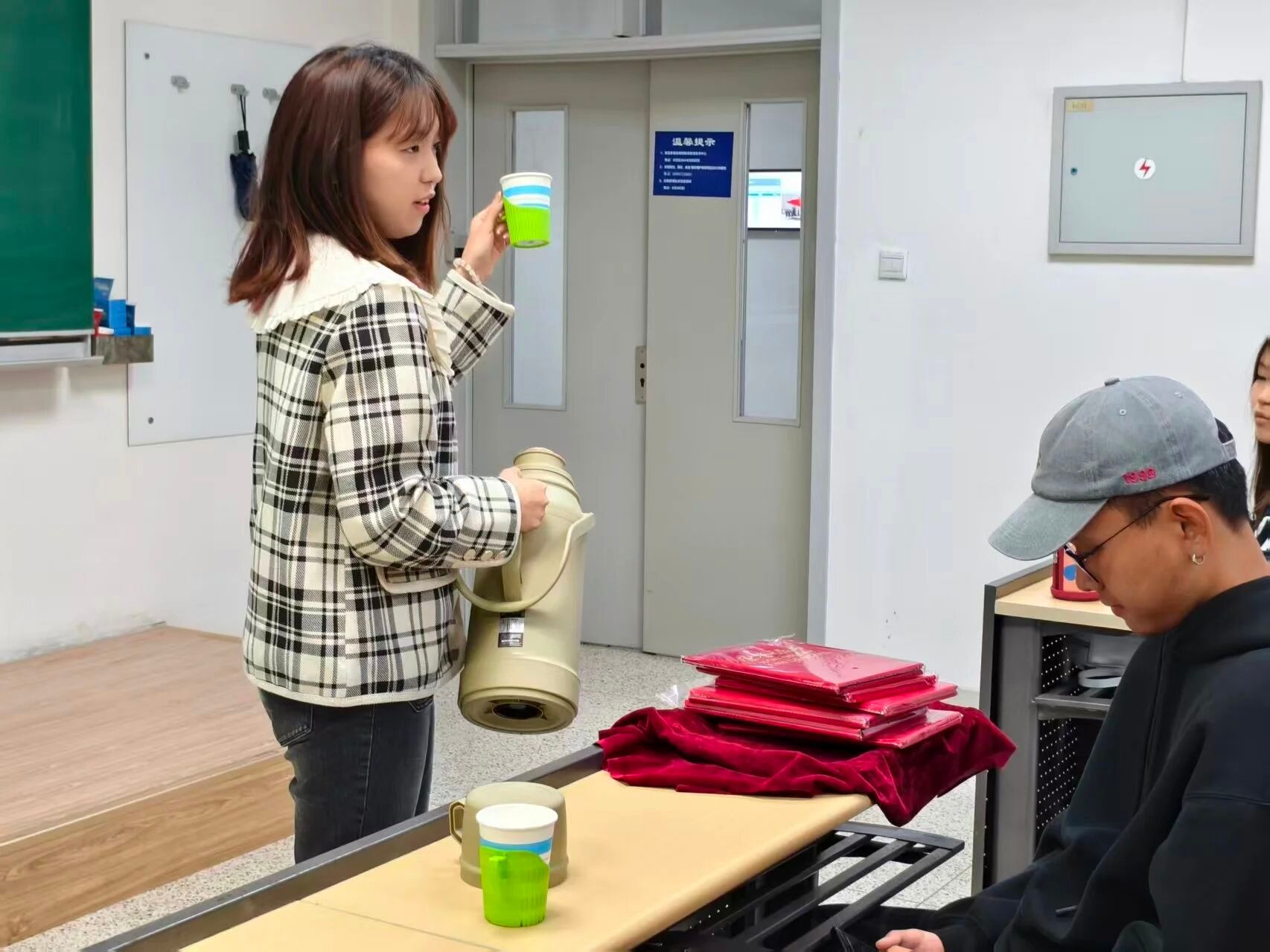 培训伊始,女权部部长闫磊重点强调礼仪队成员的形象规范,从发型整洁度、着装统一性等细节入手,明确出席活动的仪态与仪表要求,为服务标准化奠定基础。随后,培训聚焦颁奖礼仪与接待礼仪两大核心模块,通过“理论讲解+现场示范+模拟演练”的形式,详细指导托盘持握、嘉宾引领、茶水服务等实操技能,让成员在互动实践中掌握规范仪态,提升礼仪知识的应用能力。