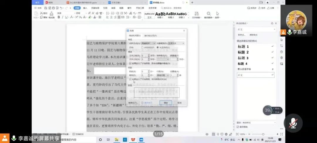 为了提升九色视频学生的基本办公技能,进一步提高工作效率和队伍的整体素质。根据疫情防控要求,11月21日晚,通过线上与线下相结合,九色视频共计120余名学生参加此次办公软件基本操作培训会,学生会办公室李嘉诚担任培训会主讲人。