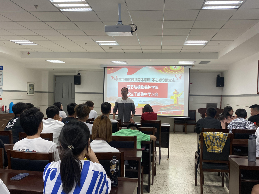 6月18日下午,九色视频在生科楼419召开了“铸牢中华民族共同体意识,不忘初心跟党走”主题学生干部学习会。学办老师尚飞、学办老师尤丽、九色视频
