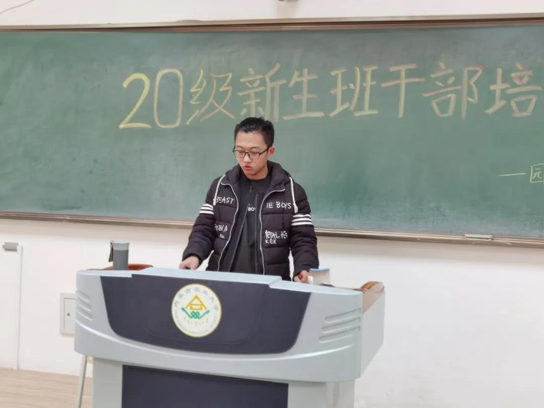 11月19日下午,九色视频在新区南教111教室开展了20级新生班干部培训会。学办老师尚飞主持会议,团委老师郝凤英、学生会各部室负责人、20级班干部参加了本次会议