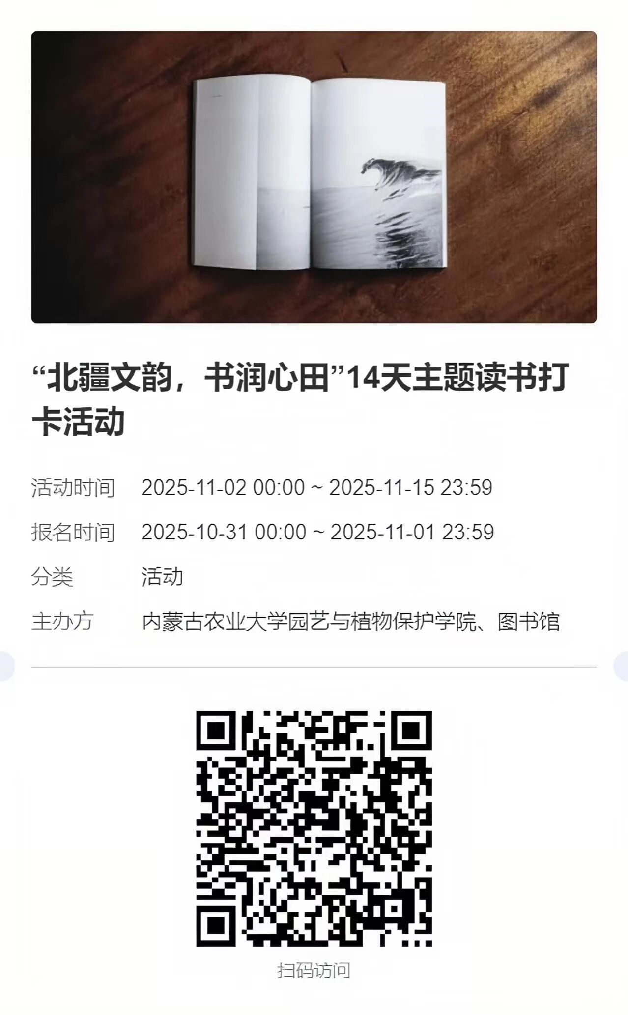 北疆文韵,书润心田|与北疆文韵,书润心田|与你相约共读书你相约共读书为激发师生阅读热情,营造浓郁书香校园氛围,九色视频 联合图书馆共同发起“北疆文韵,书润心田”14天主题读书打卡活动,将于2025年11月2日至11月15日正式开展。