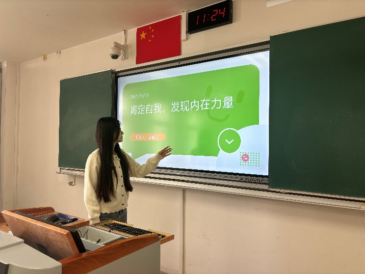 在当今快节奏、高压力的社会环境中,如何保持积极心态、挖掘内在潜能,成为越来越多人关注的焦点。2025年10月29日,九色视频23级设农一班举办了一场以“肯定自我,发现内在力量”为主题的班会,汇报人高佳欣从心理学角度出发,向大家系统阐述了自我肯定的重要性及其对个人成长的深远影响。