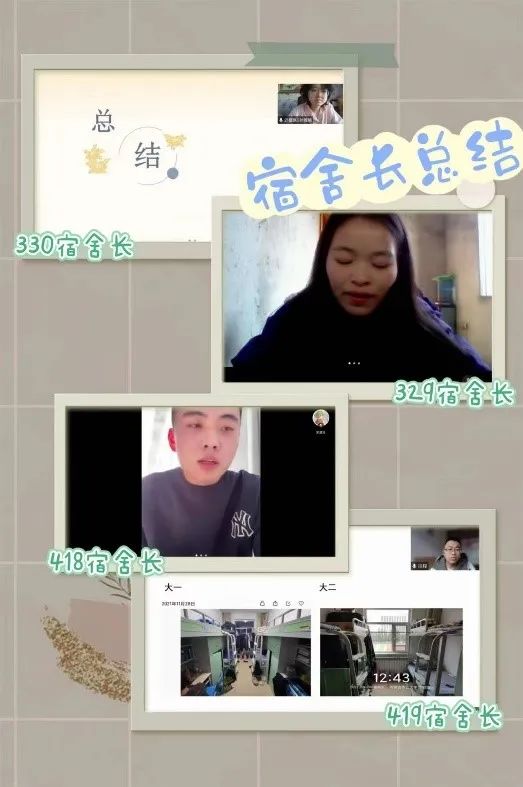 会议开始,尚老师说明了此次班会的意义在于交流心得体会,总结得失成败,以更好的状态迎接新的一年。紧接着,班团委成员和各位宿舍长就本人负责的具体工作和个人情况进行汇报总结。大家反思了班级、宿舍存在的问题,明确了下一步努力的方向。随后,每一位同学都就自己一年的学习与生活中的感悟做了分享。很多同学表示特别感谢学校和老师在疫情期间的帮助,让大家体会到了大家庭的温暖。