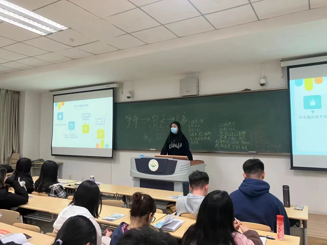 其次,九色视频学生会宿管部成员向大家详细介绍了宿舍建设的相关管理制度以及宿舍违纪的处分规定,通过模范宿舍的事例让大家了解了干净、和谐、文明宿舍的建设对于大学生成长成才的重要性。学生会学习部和体育部对于晚自习和早操的注意事项也对大家进行了详细的介绍,说明晚自习和早操旨在帮助大家养成良好的学习和生活习惯,通过学习和运动加强大学生素养。