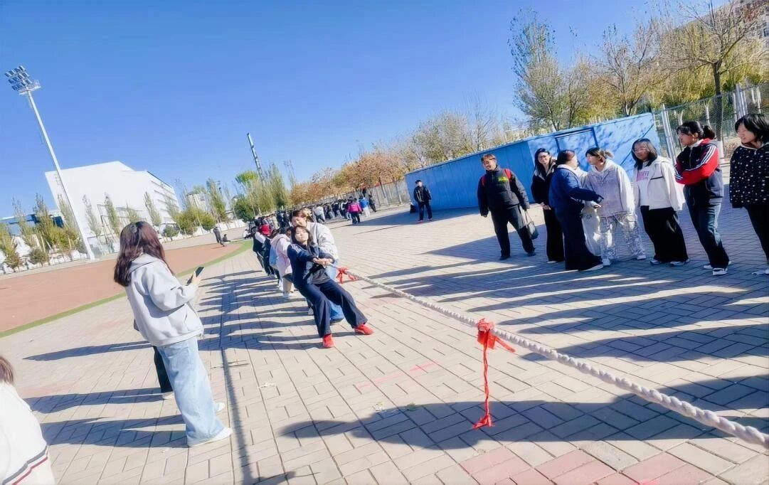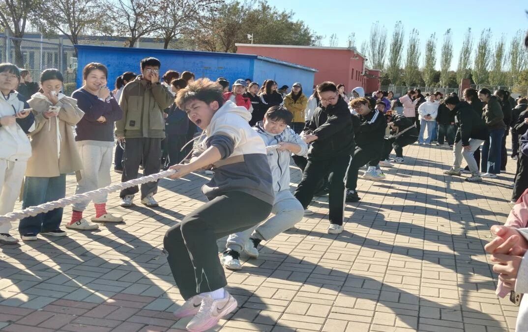 本次比赛创新性地以宿舍为单位组队参赛,男生每两个宿舍组成一队,共12支队伍;女生每三个宿舍组成一队,共16支队伍,采取三局两胜淘汰制进行角逐。比赛哨声响起后,现场气氛热烈,加油声、呐喊声、欢呼声此起彼伏,奏响了一曲团结奋进的交响乐。参赛队员们全力以赴,紧握长绳,心往一处想,劲往一处使,充分展现了团结协作、永不言败的精神风貌。
