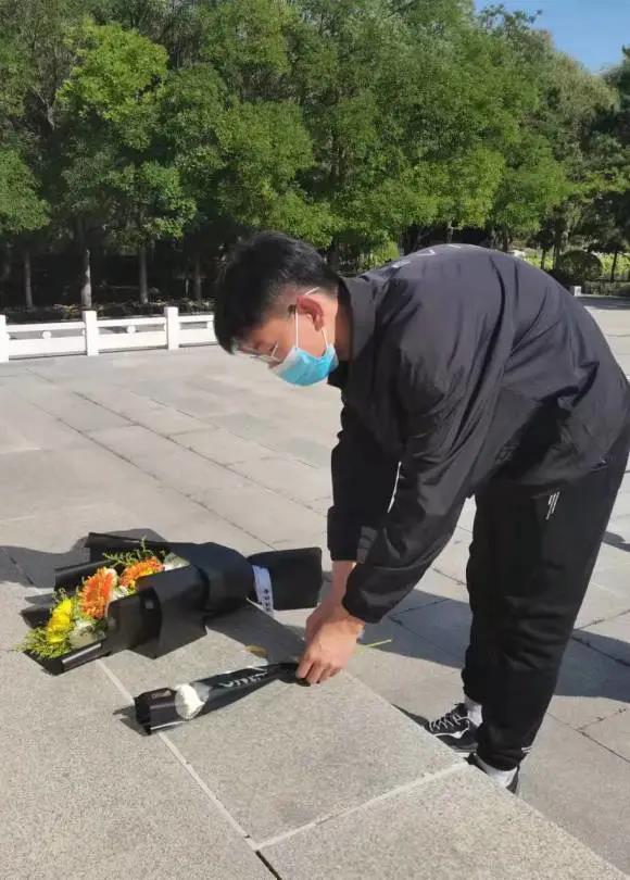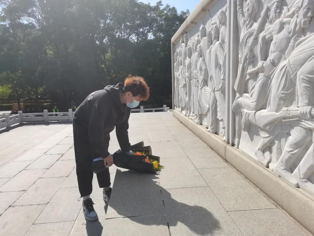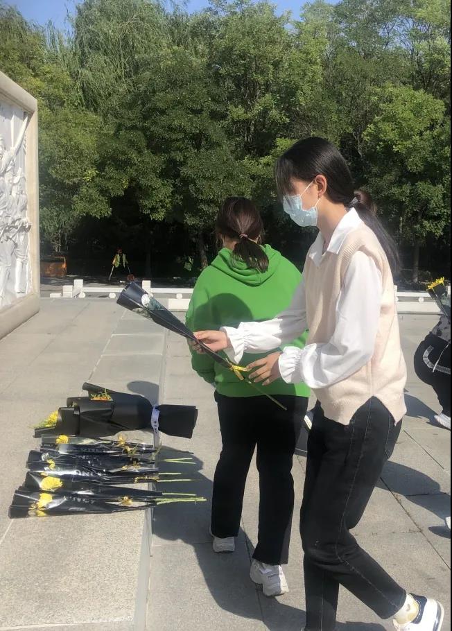 团委老师郝凤英的带领下统一乘车抵达呼和浩特市青城公园南门。整顿好队伍后,大家来到纪念碑前,郝凤英老师献上了哀悼词,以表师生对革命先辈的悼念与缅怀。集体三鞠躬并默哀3分钟后,最后同学们才有秩序地把手上的鲜花献上,展示他们的心意。最后,在郝老师的带领下,同学们重温入团誓词。