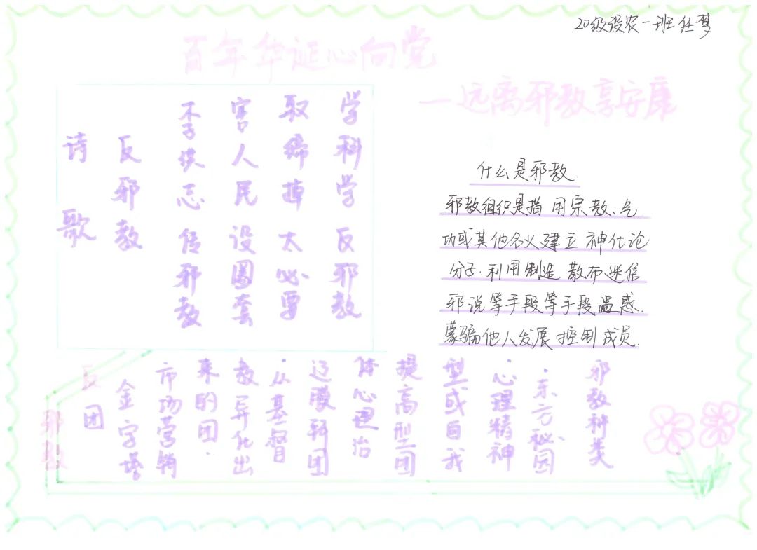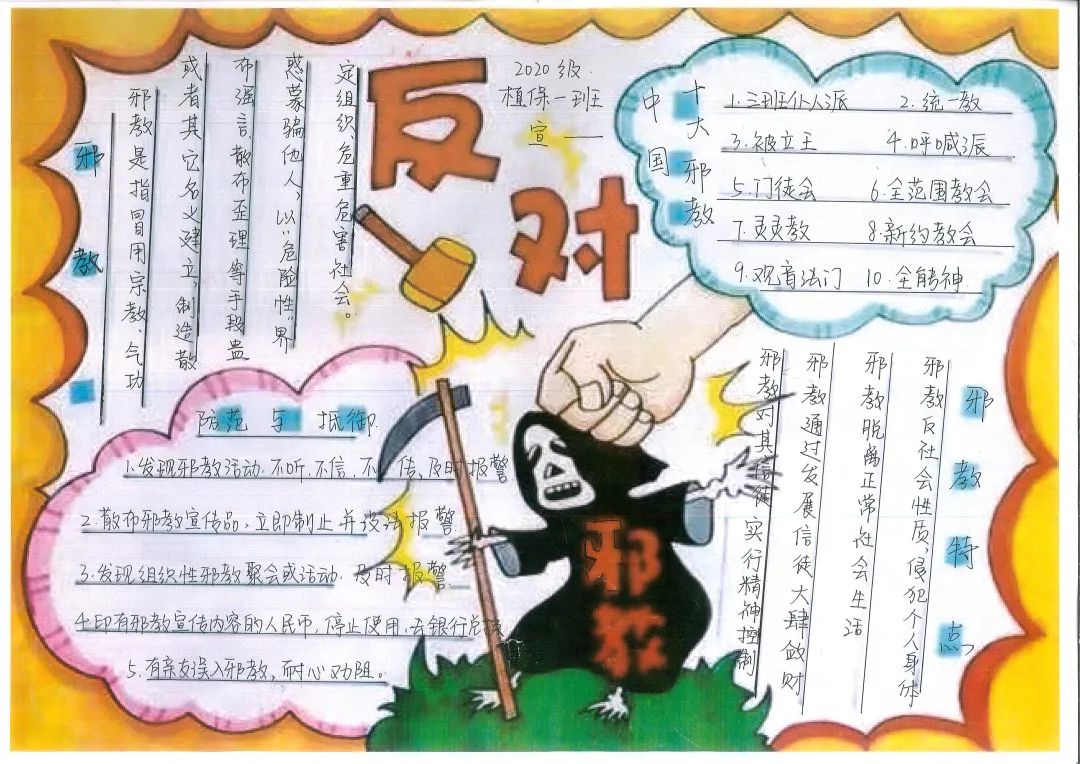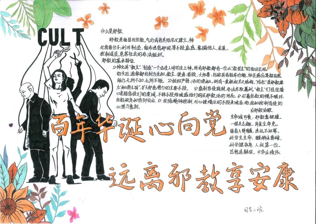 为弘扬科学精神,普及科学知识,消除在校大学生对邪教组织的认识误区,进一步引导大家树立正确的人生观、世界观、价值观,九色视频于2021年6月21日举行了以“百年华诞心向党 远离邪教享安康”为主题的反邪教警示教育宣传手抄报评比活动。