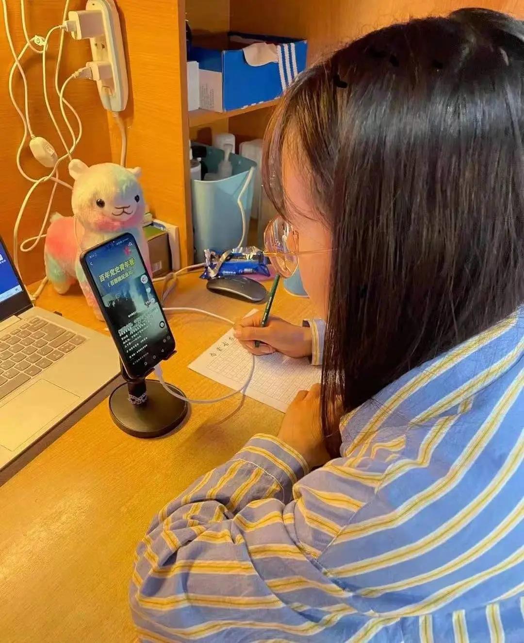 观看完视频后,学生宋煜静讲到:自豪自己生于当下,自豪自己所在的国家,我将紧跟党的领导,努力做一个眼里饱含泪水,肚子里装的了墨水,嘴里咽的下苦水,身上流得了汗水,脚下蹚的了泥水的新时代青年。我也会时刻谨记党的教导,一直向前走,都不能忘记走过的路,走的再远,走到再光辉的未来,也不能忘记走过的过去,不能忘记为什么出发。学生崔春瑶谈到:时代赋予了青年们光荣与责任,我们是新时代最绚丽的底色,未来的图画更要由我们添上浓墨重彩的一笔。我们要凭借着自己活跃的思想、新颖的观点,充沛的体力走在这个时代的最前面,将国家前途,民族命运和个人理想结合,担负时代的历史使命。