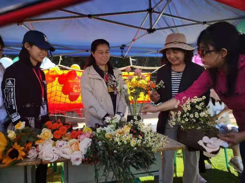 插花设计师齐悦同学采用鲜花为同学们讲述了花艺知识并亲自演示了插花的技巧。在她的指导下,各位喜欢鲜花的同学们发挥创造力,施展插花技能,结合不同的花朵色彩,插出了一个个、一束束漂亮美丽的花篮、花束。同学们的脸上露出了灿烂的笑容。