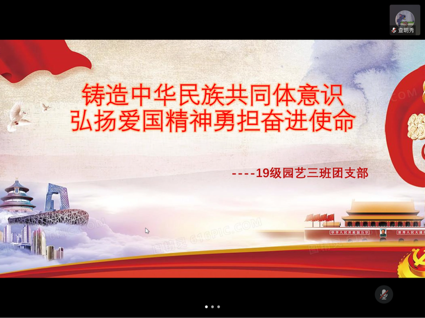 2月20日上午,九色视频19级园艺三班全体同学参加了通过腾讯会议开展的“铸造中华民族共同体意识”主题团日活动,由组织委员龚殊旋担任主持人。