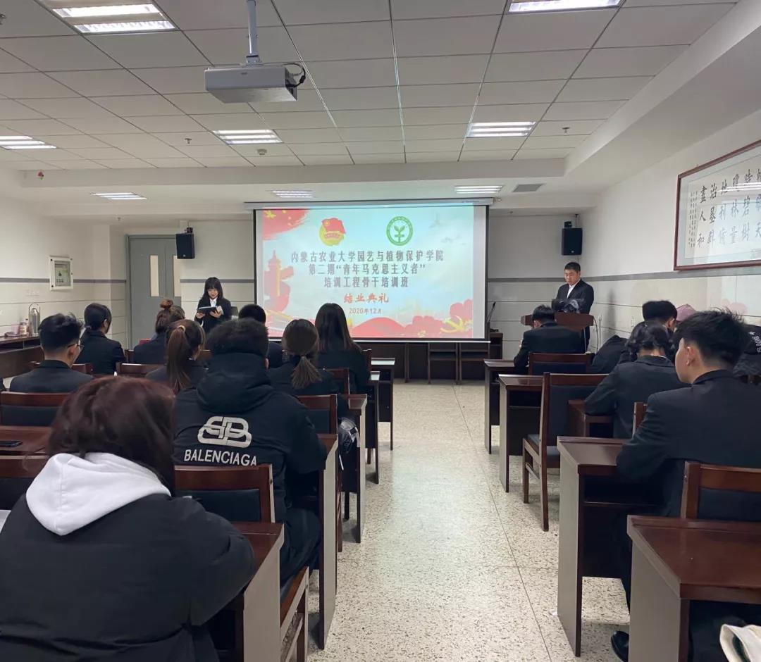 在严肃庄重的氛围下,全体成员起立,奏唱国歌。随后,青马班优秀学员代表发言。战金龙讲到,作为学生干部更要加强学习,充分扩展自己的思维,努力提高政治理论素养,发扬艰苦奋斗、顽强拼搏、勇于奉献的精神;刘冬雪分享了她的收获,她表示通过此次青马班的培训,在学习中更加坚定了对马克思主义的信仰,也明白如何运用马克思主义解决实际生活与工作中的问题;袁和权提出同学们应该树立正确价值观、人生观,坚定不移地跟着党的步伐走,努力成长为立场坚定、素质全面的青年马克思主义者。接着,团委老师郝凤英总结讲话,她强调:每一次实践活动、理论学习都是有意义,做事不能光做而不去思考,白白消磨时光,应当学会从中收获总结,汲取经验,由此来提升自己,用理论指导实践,做一个青年马克思主义忠实的追随者。最后,结业典礼在响亮的团歌中结束。