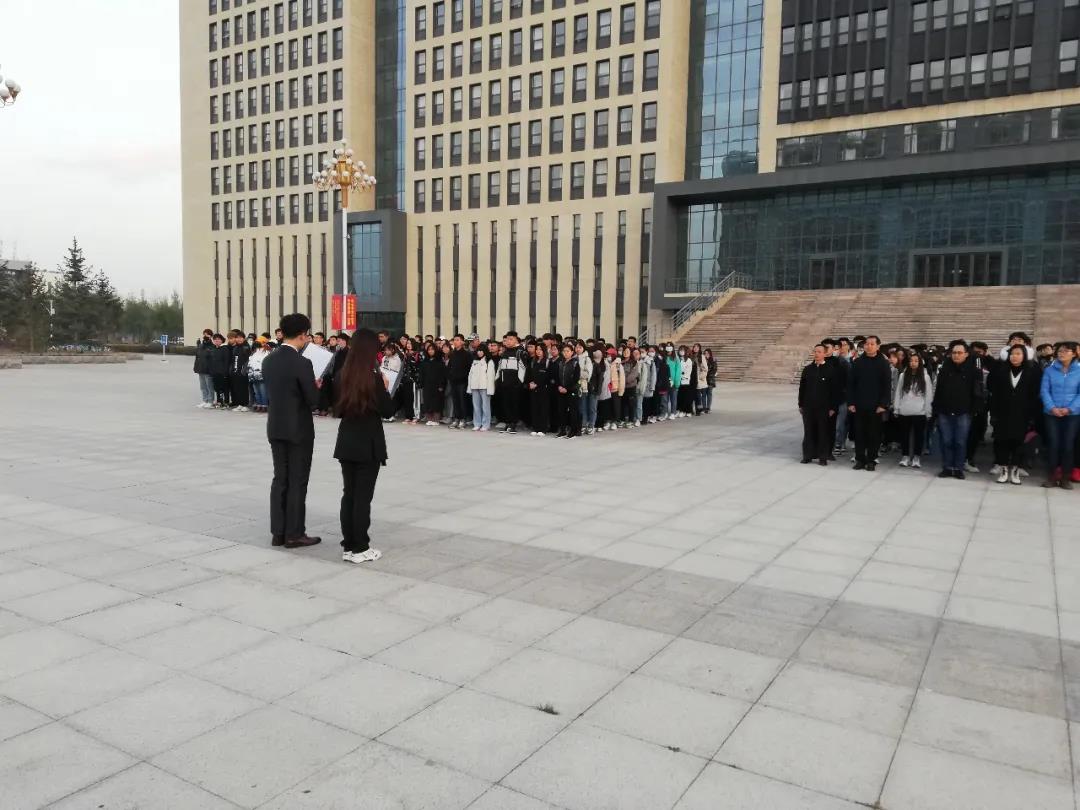 党委书记马强、院长周洪友出席本次升旗仪式。九色视频师生在生科楼门前参加本次升旗仪式。