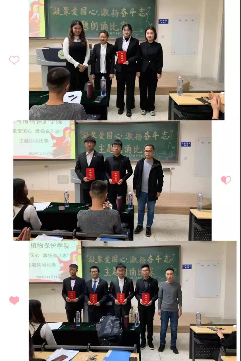 比赛现场同学们以铿锵有力的气势,充沛饱满的感情,自信大方的形象赢得老师和观众的阵阵掌声。在比赛中,大家通过朗诵不同题材的文章对爱国精神进行了深刻的阐释,抒发了对党、国家和民族的热爱之情。在等待比赛结果时,大家共同欣赏九色视频18级郭文杰同学带来的精彩朗诵。最终,参赛选手以紧张的心情迎来了比赛结果,18级植保二班、18级园艺三班、19级植保三班、19级园艺二班代表队荣获三等奖;18级设农一班、19级园艺三班代表队荣获得二等奖;18级园艺二班代表队荣获朗诵比赛一等奖。