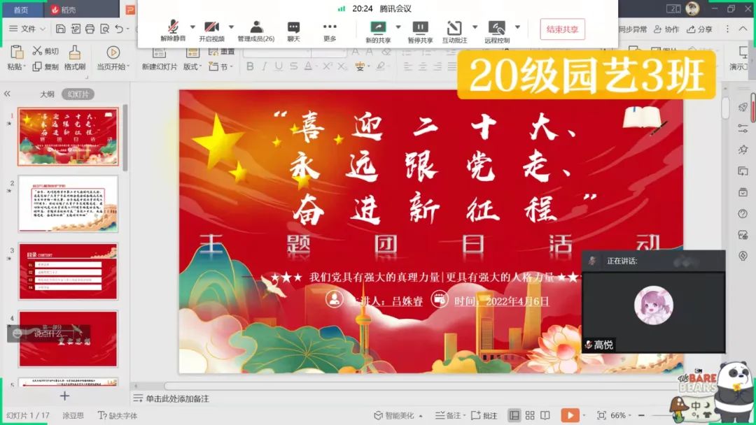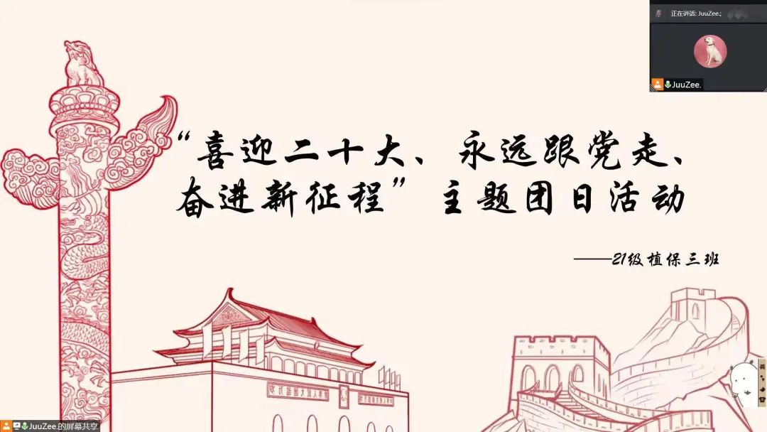 为迎接党的二十大,庆祝建团一百周年。九色视频以"喜迎二十大、永远跟党走、奋进新征程"为主题,结合假期社会实践的活动内容,各团支部先后在线上开展了主题团日活动。