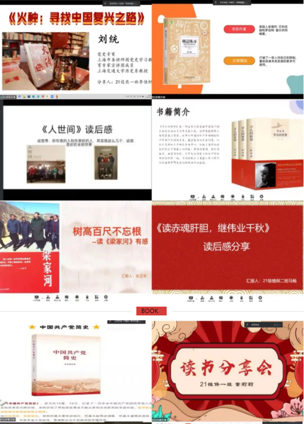 分享会上,各位参赛选手讲述了自己喜欢书籍。期间,李嘉诚同学分享的《红嫂》,让同学们感受到了沂蒙山区母性群体的伟大,以及在革命事业中做出的巨大贡献;张芷若同学分享的《梁家河》,使大家深刻感悟到,梁家河的七年知青岁月磨练了总书记的意志,锻炼了他的才干,也成为了其人生中重要的转折点;张桂同学分享的《傅雷家书》,通过傅雷写给两个⼉⼦的信,参透了⼀种伟⼤的、理智的⽗爱。分享结束后,郝老师做出总结,希望同学们在今后的学习和生活中,养成一个阅读的良好习惯,真正用知识武装头脑,不辜负习总书记对广大青年的殷切期望。